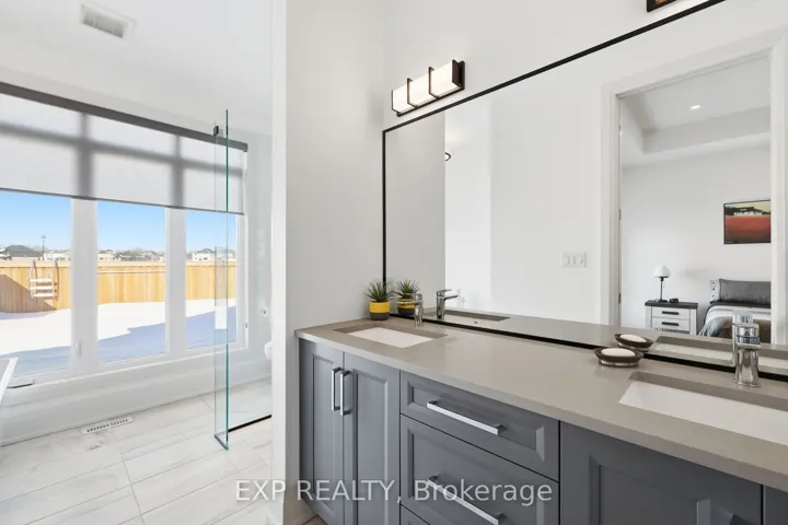 +"PublicRemarks": "Welcome to modern bungalow living with a resort-style backyard. Built in 2022 by award-winning Halcyon Homes. The quality and clean lines set the stage. A wide concrete driveway, timeless brick, and Hardie Board shake and siding create exceptional curb appeal and long-lasting durability. Inside, 1,838 sqft of thoughtfully designed main-floor living awaits, featuring 9-ft ceilings, 8-ft interior doors, engineered hardwood throughout, and elegant 7.5" baseboards that elevate every space. This home offers three main-floor bedrooms, two with its own private ensuite, a rare and coveted feature. Enjoy curb-less glass showers, quartz countertops, and custom lighting that create a true spa-like experience for family and guests alike. At the heart of the home, the chef's kitchen is anchored by a 10-foot island perfect for gathering and entertaining. High-end built-in appliances, ample cabinetry, and a large walk-in pantry make this space ideal for those who love to cook and host. Open-concept layout flows seamlessly into the family room, where oversized windows and a gas fireplace with stone surround create a warm, inviting atmosphere. Practicality meets luxury with a spacious mud/laundry area, generous storage, and direct access to the oversized double car garage, with stairs to the lower level, ideal for in-law potential, future finishing w a roughed in bathroom, or simply easy access for everyday living. Outside experience a backyard designed for unforgettable summers. Through custom French doors, enjoy morning sun and evening gatherings under the 21' x 10' covered patio. A brand-new gas heated 3ft-5ft saltwater pool, extending your swimming season transforming this property into your own private retreat. Perfectly located just minutes from South London, with easy access to the 401, Costco, St. Thomas, and Port Stanley, this exceptional bungalow blends upscale living with everyday convenience.This is more than a home-it's a lifestyle. Come experience it for yourself."