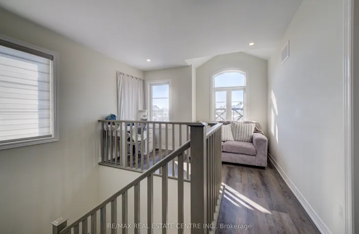 +"PublicRemarks": "Beautiful end unit freehold townhome, new in 2024, NO condo fees. Custom townhome on extra large pie shape lot in Stonegate Community. Features magnificent stone and stucco architecture with beautiful front elevation with covered porch and faux balcony. Interior features soaring 9 foot ceilings on main level. Custom end unit floor plan with extra windows and bump out on all 3 levels for extra square footage made possible by wide and private pie shape lot. Open concept kitchen, fridge opening 38"X72.5", large living room, chef's kitchen with cabints made wider and deeper for larger fridge, taller uppers cabinets, lower pots & pans drawers, peninsula with breakfast bar, "Quorastone" quartz countertops. This home is carpet free with beautiful and durable,modern plank floors. Bright upper level features 3 spacious bedrooms with larger windows, including primary bedroom with ensuite bath, walk-in closet plus bonus loft/office area. New owners get balance of Ontario New Home Warranty. Large basement with endless possibilites including rough-in extra bathroom plumbing and energy efficient features. Don't miss this fantastic home."