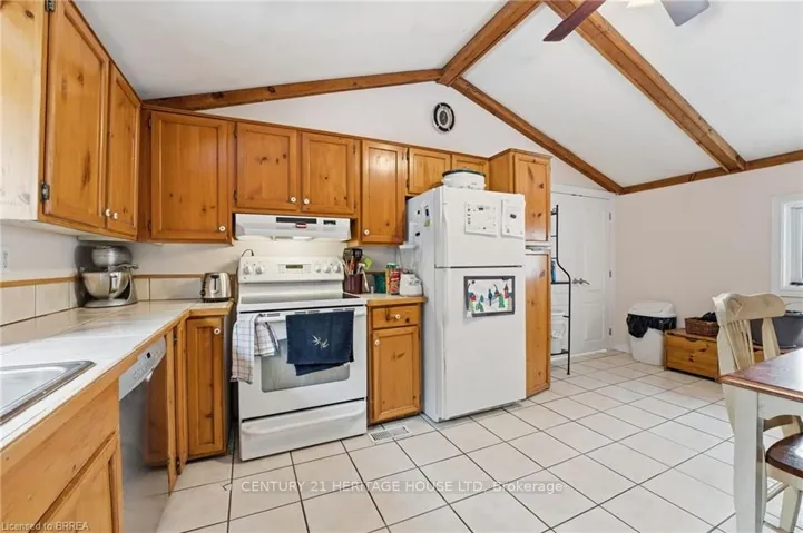 +"PublicRemarks": "This impressive home is set back from the road on a 0.69 of an acre lot and features a covered front porch with an inviting entrance, a huge living room for entertaining that has a 10'4" high ceiling with pot lighting, crown molding, hardwood flooring, and lots of natural light through all the windows, a formal dining room for family meals, a bright eat-in kitchen with tile flooring, an updated 4pc. bathroom at the front of the house that has tiled walls and a modern vanity, spacious bedrooms with more hardwood flooring and crown molding, another bathroom at the back of the house that doubles as a convenient main floor laundry room, and there is a large bedroom with a vaulted ceiling and patio doors leading out to the deck in the private backyard(the bedroom is currently being used as an office and workspace). The basement boasts a cozy recreation room with a walk-up to the backyard, a den, and plenty of storage space. You can relax with your family and friends around the inground swimming pool in the private backyard with high cedars that run across the back of the property, and the detached garage will be perfect for a hobbyist. Updates include a metal roof in 2019, new furnace in 2015, updated vinyl windows, new pool floor and pool liner in 2021, and more. A spectacular home that's close to schools, parks, trails for walking and biking along the river, shopping, and fine restaurants. Book a private showing before it's gone!"