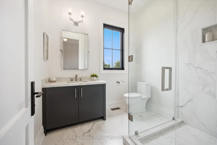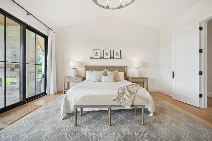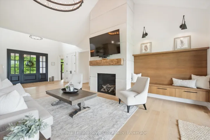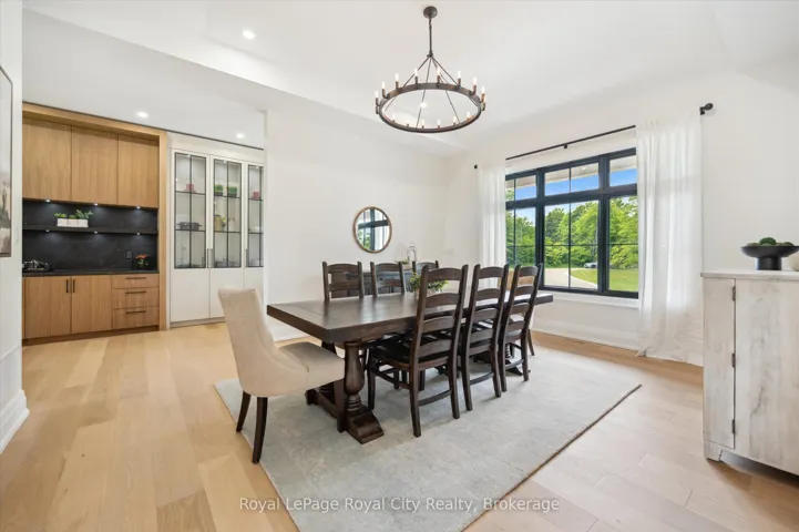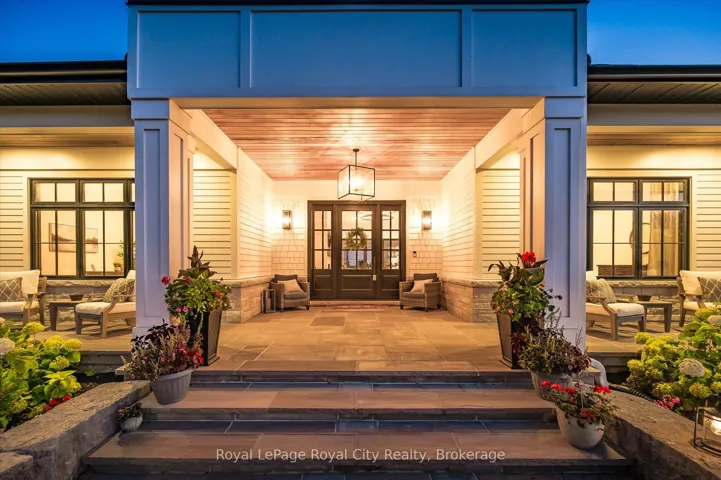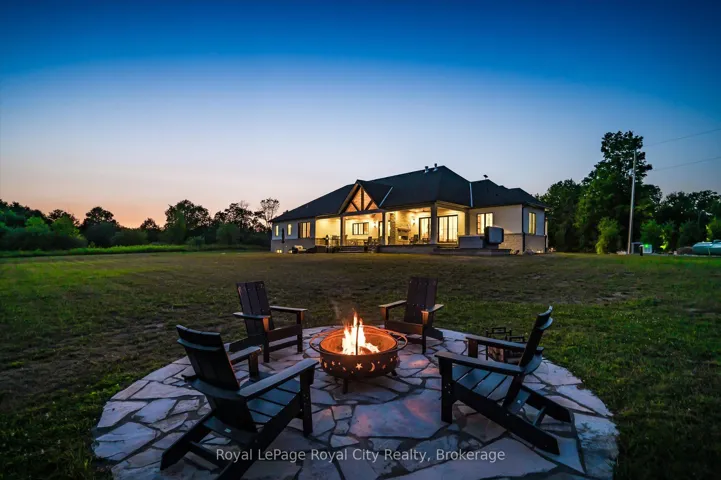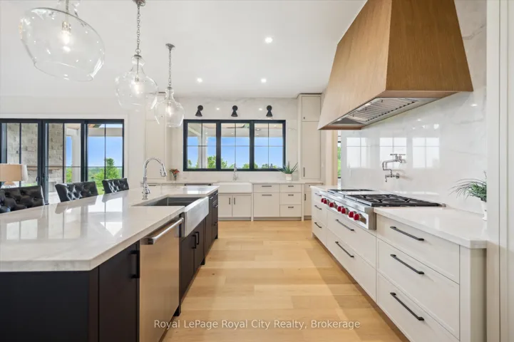 +"PublicRemarks": "Custom-Built Luxury Bungalow on 2.4 Private Acres with Escarpment Views. Welcome to this one-of-a-kind custom-built bungalow offering 3,400 sq. ft. of refined main floor living space, perfectly nestled on 2.4 acres of serene countryside. With panoramic views of the escarpment and set well back from the road, this residence offers exceptional privacy while being just 20 minutes from the 401. Designed with luxury and functionality in mind, the home boasts soaring ceilings and oversized windows, creating an expansive, airy ambiance throughout allowing the natural landscape in and flooding the home with light. The main level features a seamless open-concept layout anchored by a great room and primary bedroom with oversized sliding doors opening to an extended outdoor living space with a two sided fire place, hot tub, and an abundance of entertaining space. The heart of the home is a chefs dream kitchen outfitted with top-tier Wolf, Sub Zero, and Cove appliances, complemented by a stylish servery just off the formal dining room. Retreat to the spacious primary suite, a true sanctuary offering an oversized spa-inspired ensuite complete with heated floors, a large walk-in shower, water closet, luxurious soaker tub, dual sinks with an extended vanity, and a generously sized walk-in closet. Two additional bedrooms on the main floor each enjoy their own private ensuites. Downstairs, the wow factor continues. The 10-foot ceilings and expansive windows make the finished basement feel anything but below grade. Designed for versatility, the lower level includes a full gym, sauna, and a private entry from the oversized 3-car garage making it perfect for an in-law suite. This separate living space features a bedroom, full bath, and kitchenette with a fridge, sink, and microwave. Every detail has been thoughtfully considered. Truly, this is a rare opportunity to own a stunning estate home where luxury, privacy, and convenience converge."