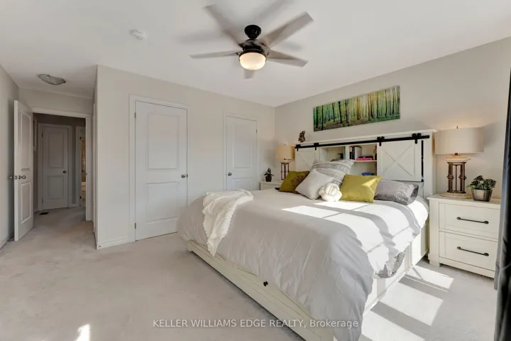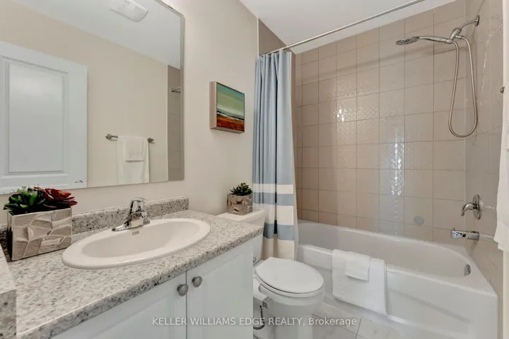 +"PublicRemarks": "Welcome to this beautifully updated 2-bedroom, 2-bath second-floor end unit in the heart of Kanata's sought-after Bridlewood community. This move-in-ready home has been thoughtfully refreshed throughout, featuring fresh paint across the bedrooms, main living area, kitchen and ceilings, complemented by elegant crown moulding. The bright, functional kitchen was upgraded with new tile flooring (2026) and a stylish bar-top addition, perfect for casual dining and entertaining. The open-concept living and dining areas are warmed by a cozy fireplace and lead to a large private balcony overlooking quiet treed pathways and the community's outdoor inground pool, an ideal spot to unwind. The spacious primary bedroom offers a private ensuite and custom PAX storage, providing excellent organization and added functionality. A full 4-piece main bath, in-unit laundry, and ample storage complete the interior. Enjoy the convenience of one private garage parking space plus two surface parking spaces, along with plenty of visitor parking. Located just steps from Bridlewood Plaza, public transit, parks, walking paths, recreation facilities, schools, and everyday shopping, this home offers outstanding walkability and easy access to everything Kanata has to offer. A turnkey opportunity in a quiet, well-managed community, perfect for first time buyers or downsizers looking to move in and enjoy immediately."