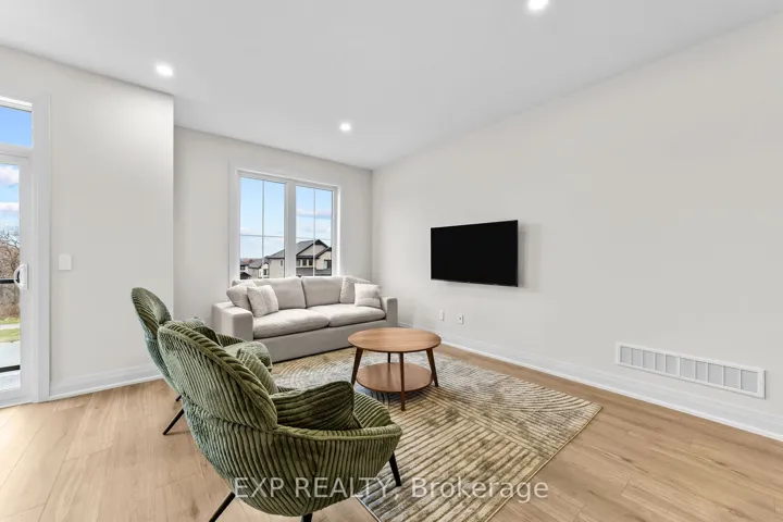 +"PublicRemarks": "Designed as London's most attainable new home condominium community, every residence in this collection is an end unit, providing exceptional natural light, enhanced privacy, and a sense ofopenness that reflects the interior design vision. Inspired by natural tones and modern functionality, the homes feature a warm streetscape palette carried inside to create an inviting atmosphere for growing families, first time buyers, and newcomers establishing roots in the city. Offering approximately 1,795 square feet above grade as per builder plans, this three storey back to back semi centres everyday living around a bright open concept main floor with nine foot ceilings, waterproof luxury laminate, and a quartz kitchen with upgraded cabinetry that extends to a glass railed balcony suited for morning coffee or relaxed entertaining. The ground level Flex Room offers versatility for a home office, fitness area, playroom, or guest space, while the upper level unites three bedrooms and two full bathrooms. The primary suite stands out with an oversized layout currently staged with a king sized bed, a large walk in closet, an ensuite w/double vanity, and a modern plate glass walk in shower. Powder rooms on both the entry and main levels add everyday convenience, and the built-in garage with a Wi-Fi enabled opener pairs with a private driveway to offer secure, effortless parking. Nearby parkland and walkable amenities enhance everyday living, with Sheffield Park, playgrounds, sports centres, and the Thames River trail network all within easy reach. The community benefits from quick access to Highway 401, London's industrial park, East Park, and national retailers like Costco, supporting long term value for both end users and investors. Built by Johnstone Homes, a trusted London builder with more than thirty five years of experience, Parkside brings together quality materials, modern design, and low maintenance living in a location defined by nature, neighbourhood, and convenience."