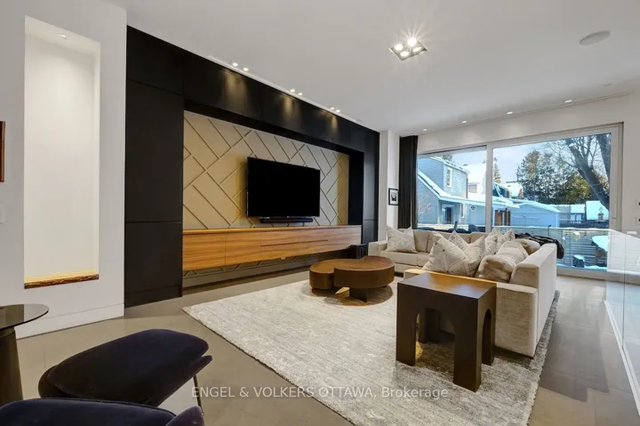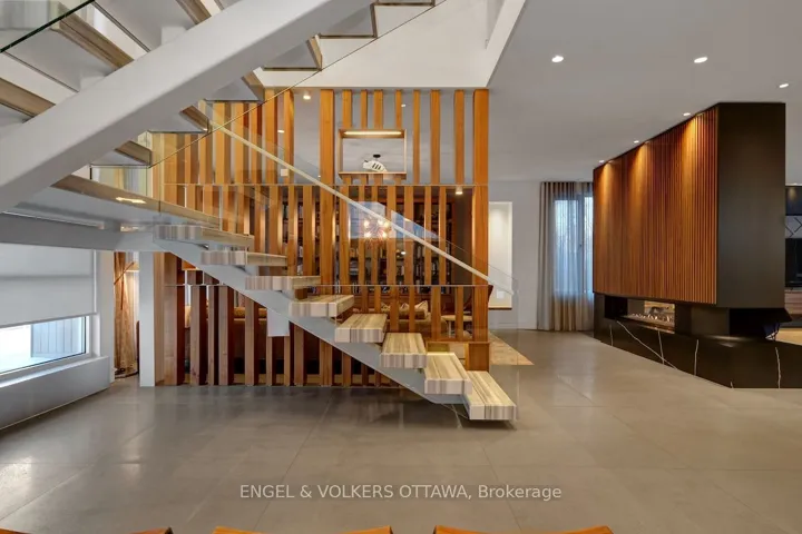 +"PublicRemarks": "An exceptional contemporary residence in the heart of Westboro, offering over 4,400 square feet of architectural intention and elevated comfort across three levels. Custom built and professionally designed, with an exemplary standard of craftsmanship throughout, every element has been carefully considered. Clean lines, generous scale, and carefully selected finishes define the interior, beginning with a light-filled main level framed by 10-foot ceilings, oversized porcelain tile floors and floor to ceiling windows illuminating the marble encased floating staircase. The linear gas fireplace subtly delineates the living and dining areas while also serving as a sculptural centrepiece. Custom millwork forms a bespoke library wall introducing depth and architectural interest to the main living space. The kitchen is a statement in contemporary design and performance, featuring custom European-inspired cabinetry, integrated professional-grade appliances, an expanded island, and a thoughtfully curated coffee and beverage station. Clean sight lines, concealed hardware, and seamless storage solutions reinforce the home's tailored, minimalist aesthetic. The primary suite offers a quiet retreat with custom walnut built-ins and a five-piece ensuite that includes a skylight, curbless glass shower with wet and dry zones, and an extended floating double vanity. Secondary bedrooms are well proportioned, and a home office with private balcony provides flexible space for work or study. The lower level is designed for everyday use and flexibility, offering a versatile recreation area, ideal for fitness enthusiasts, a full bathroom, and a well-organized laundry room with built-in storage and folding surfaces. A custom mudroom with integrated cubbies provides direct access to the oversized heated garage, reinforcing a practical and well-resolved layout. Located just steps from river pathways, cafes, and boutiques in one of Ottawa's most walkable neighbourhoods."