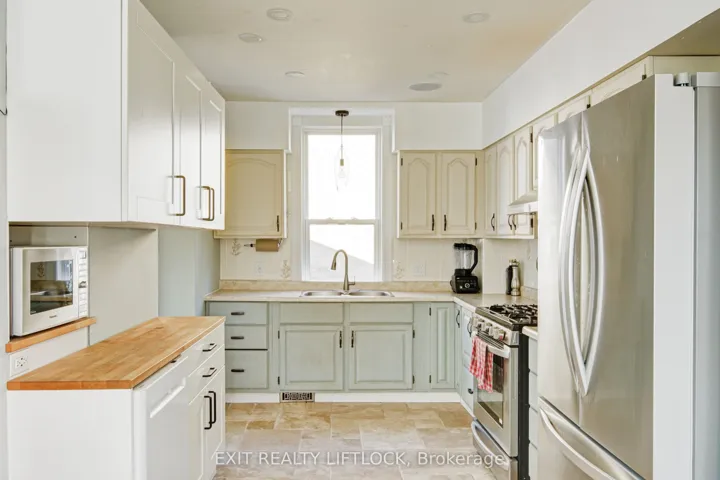 +"PublicRemarks": "If you have been looking for a home with character, this all brick 2.5 storey century home delivers. Travertine flooring from the front entry carries through to the kitchen and dining area, where there is plenty of space for family meals, hosting, and everyday living. The main floor includes a comfortable living room with hardwood flooring, a 2 piece bath, and a sliding door that opens to a large deck and fenced backyard. Whether it's kids running around, pets enjoying the yard, or quiet evenings outside, this space is ready for it. Upstairs offers three bedrooms and a full bathroom, plus a bonus loft on the top floor. It is unheated and not included as finished space, but it is a great bonus area for play, hobbies, or a creative studio. In the back yard is a detached heated 1.5 car garage with workshop. This home blends classic style with everyday practicality. Easy access to downtown, shopping, bus route, and schools."
