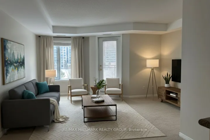 +"PublicRemarks": "Welcome to The Broadway! This well-established high-rise condo is ideally located just off the hustle and convenience of Merivale Road, offering exceptional access to transit, shopping, dining, and everyday essentials. This bright and inviting 1 BEDROOM | 1 BATHROOM apartment features in-unit laundry and an oversized balcony overlooking Celebration Park's duck pond, playgrounds, and tennis courts-perfect for enjoying peaceful southwest-facing views and afternoon sun. The living spaces are finished with soft sand-coloured broadloom, and a discreet laundry closet is conveniently located off the kitchen. Window blinds are installed throughout for added comfort and privacy. Recent upgrades (January 2026) include: Fresh paint throughout, New carpet, New window blinds, New kitchen faucet. Residents enjoy access to excellent building amenities, including onsite management, a fitness centre, party room with pool tables, central air, and bicycle storage. Enjoy a highly walkable lifestyle with public transit, wooded leisure paths, Algonquin College, the Experimental Farm, and a wide selection of dining and shopping options just minutes away. Rent includes: Heat, water, hot water tank rental. Tenant pays: Hydro. Note: Parking is currently available for lease at $120/month and can be included in the lease or offered as an optional add-on. Minimum lease term: 1 year"