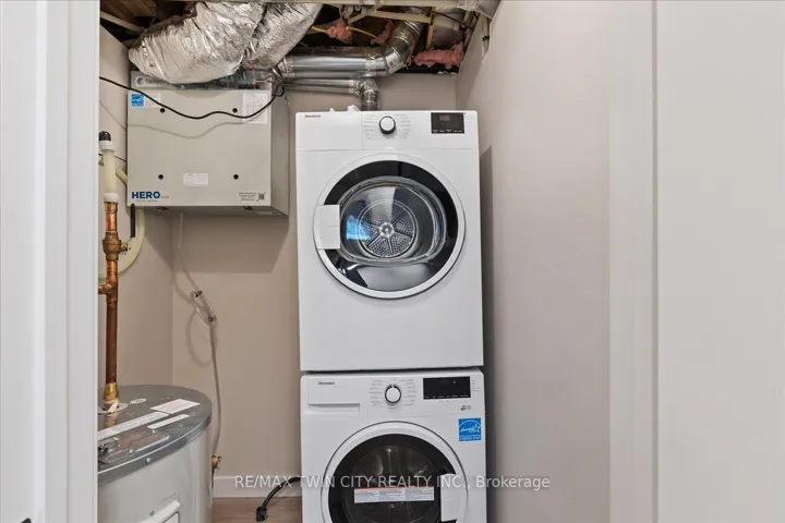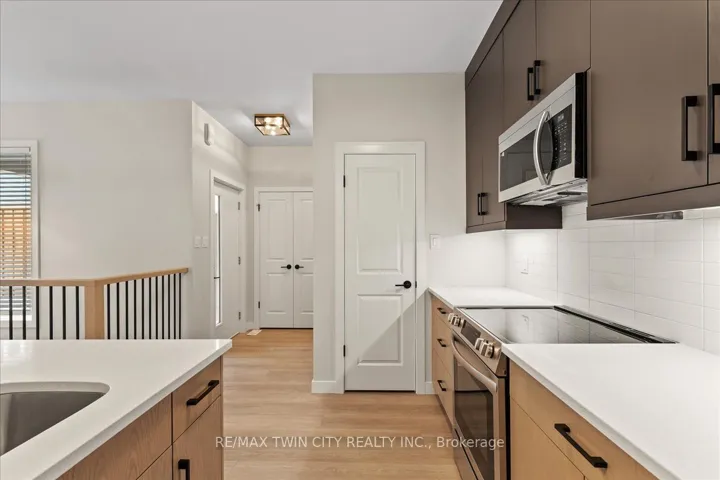 +"PublicRemarks": "FIRST MONTH FREE RENT INCENTIVE. Beautiful rental! This energy efficient and modern compact unit offers luxury finishes comparable to a custom home. At 860 square feet and offering 2 bedrooms, 1.5 bathrooms, this unit comes with large main floor windows, 9' ceilings and a wide open layout making for a bright space. The living room, kitchen, and powder room all occupy the main floor. The two-tone kitchen is a combination of a white oak finish with satin grey floor to ceiling cabinets and soft close mechanisms along with quartz countertops throughout the kitchen and bathrooms. Brand new stainless steel kitchen appliances and stackable laundry washer and dryer. The black hardware contrasts the white trim and matches the black plumbing fixtures throughout. LVP flooring in the entire unit matches the oak staircase and iron spindles leading to the basement. Two bedrooms; one with built in drawers, a laundry, and a four-piece bathroom make up the lower level. Conveniently Country Hill location!"