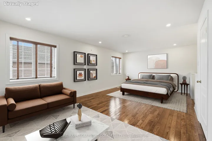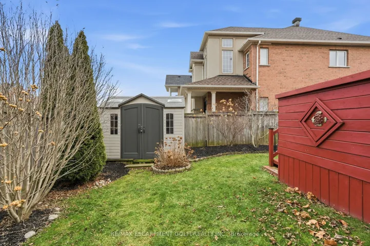 +"PublicRemarks": "Welcome to 100 Springstead, an exceptional corner-lot home offering space, style, and thoughtful upgrades throughout. This 5 bedroom, 4 bathroom residence impresses from the moment you arrive with an exposed aggregate driveway, stamped concrete covered wrap-around front porch, and a double garage finished with epoxy chip flooring. Inside, the open concept main level is anchored by a striking three-sided fireplace connecting the kitchen and living room, complete with granite countertops, stainless steel appliances, a built-in entertainment unit, and solid oak staircase. Main level laundry, central vac, wood blinds throughout, and a seamless flow make everyday living effortless. The primary bedroom retreat offers a private ensuite and two walk-in closets with custom built-ins, providing exceptional comfort and storage. Step outside to enjoy a wrap-around balcony that can be accessed directly from the front bedroom through elegant French doors. In the backyard you will find a large deck ideal for entertaining or relaxing and a private yard with shed. A Rainbird automatic sprinkler system will make sure the grass is always green. The finished basement adds flexible living space, while 4K cameras, alarm system, and fully hardwired internet provide peace of mind and modern convenience. Located minutes from Fifty Point Conservation Area, Lake Ontario shoreline, parks, and trails, with quick access to the QEW, Winona Crossing, Costco, restaurants, and local shops. This is a home designed for comfort, connection, and an elevated lifestyle."