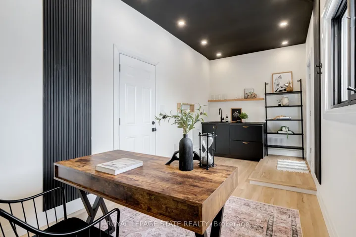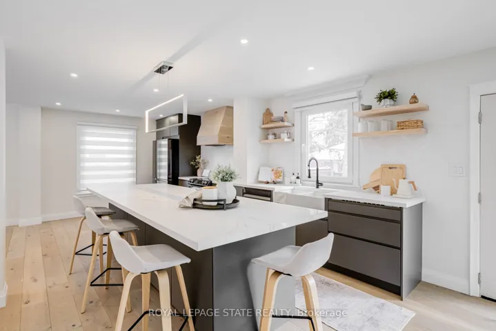 +"PublicRemarks": "Ideally located on one of South Waterdown's most desirable streets in the Rockcliffe Survey neighbourhood. Set on a sprawling 75-foot-wide lot, this fully renovated designer two-storey home is just steps to escarpment trails, parks, schools, all of Waterdown's convenient shopping, dining, or service amenities, and it offers quick access to Highway 403, Aldershot, and the GO Station. Renovated from top to bottom and meticulously maintained, this stunning residence offers 4+2 bedrooms and 4 total bathrooms, with over 3,500 sqft. of thoughtfully designed living space. The main floor features a chef-inspired kitchen with custom cabinetry, quartz counters, and black stainless-steel appliances. Flowing seamlessly into a bright living area anchored by built-in shelving and a gorgeous wood-burning fireplace. The open concept layout is perfect for entertaining and everyday living. A large dining room, stylish powder room and laundry with inside entry from the garage complete the level. Upstairs, skylights flood the home with natural light. Four spacious bedrooms are complemented by a modern main bathroom with a double vanity, and elegant finishes. The primary suite feels like a private retreat, complete with a spa-inspired ensuite and a custom walk-in closet. The fully finished lower level features a separate entrance. There are two bedrooms (with egress windows), a full kitchen, bathroom, and spacious living area-ideal for extended living space, multi-generational living or an income generating suite. This home also features a unique heated studio located at the rear of the garage with access from both the laundry room or directly from the exterior-perfect for a home office, gym, or creative space. Additional highlights include engineered hardwood, custom millwork, modern lighting and remote blinds. Step outside to your own private oasis with a landscaped, pool-sized backyard, pergola, and fire pit-an ideal setting for relaxing or entertaining."