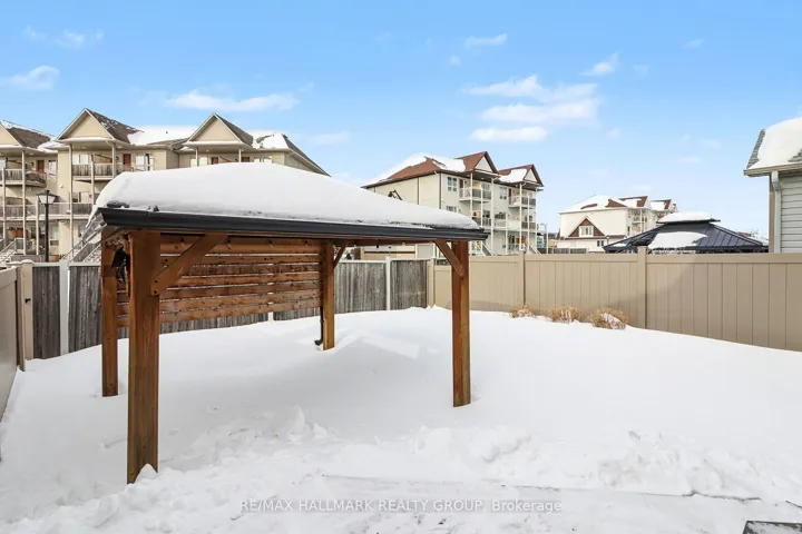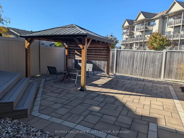 +"PublicRemarks": "Welcome to this beautiful 3-bedroom end-unit townhome, perfectly located close to all amenities and top-rated schools. This bright and inviting home features an abundance of windows, filling the space with natural light, and vaulted ceilings in the eating area that add to the open, airy feel. The kitchen is equipped with stainless steel appliances, while NEW FLOORING installed in 2024 makes the home CARPET-FREE (minus stairs). A brand-NEW ROOF (2025) with warranty provides added peace of mind. Upstairs, you'll find a spacious primary bedroom with EN-SUITE bathroom, along with two additional well-appointed bedrooms. The finished basement offers a cozy fireplace, perfect for relaxing or entertaining. Step outside to low-maintenance outdoor living featuring PVC fencing, a composite deck, interlock patio, and a charming gazebo, all within a FULLY LANDSCAPED backyard with NO GRASS. Move-in ready, this home delivers style, quality, and a prime location in one exceptional package."