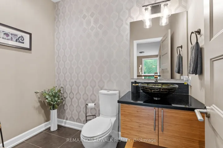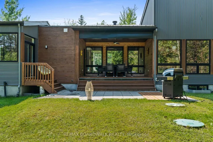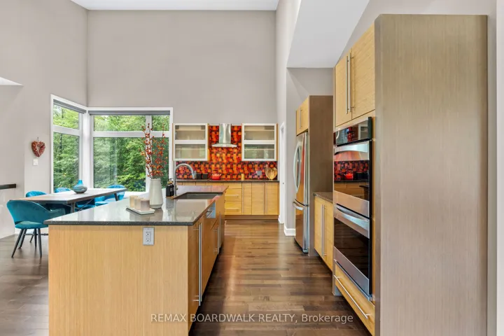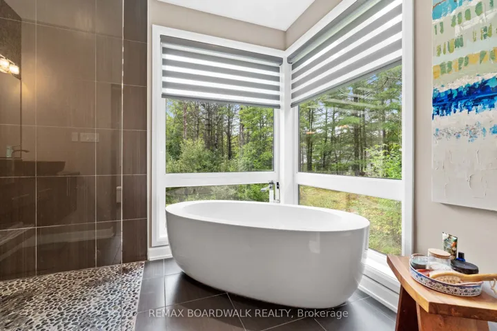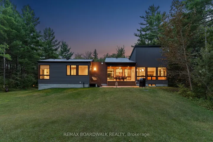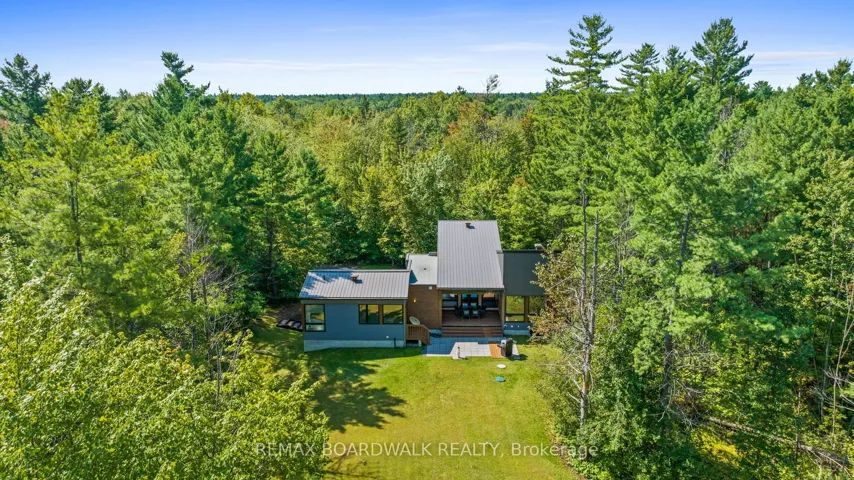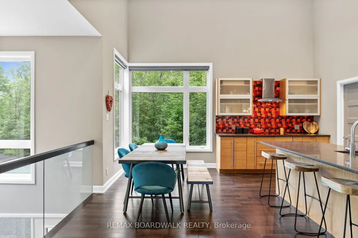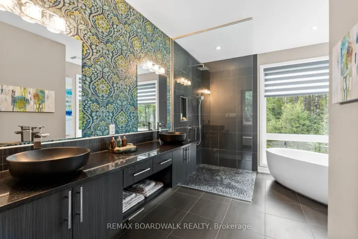 +"PublicRemarks": "Welcome to Saddlebrook Estates, where modern sophistication meets rural tranquility in this award-winning residence designed by Brian Saumure and built by Maple Leaf Custom Homes. Nestled on a private, treed 3.33-acre lot backing onto more than 500 acres of Crown land with resident-maintained hiking, snowshoeing, and cross-country ski trails, this property offers guaranteed unobstructed views and exceptional privacy.This reverse-concept home features 2,775 sq ft of refined living space (1,650 sq ft on the main level and 1,125 sq ft on the lower level), plus a 175 sq ft three-walled covered outdoor entertaining area. Radiant in-floor heating warms the lower level, while an architectural steel-and-glass staircase and abundant interior and exterior lighting create an open, airy ambiance.The great room, anchored by a Napoleon fireplace with built-in speakers, flows seamlessly into the chef's kitchen complete with professional appliances, a walk-in pantry, electronic push-button cabinetry, a dining area, and a powder room roughed-in for a future bath or shower. Designed for convenient living, the primary suite is located on the main living level and features a dressing area and spa-style ensuite. A bright office on the main level opens to a private balcony and yard walkout.The lower level includes a media room, three additional bedrooms, a full bath, mudroom, storage or gym area, mechanical room, and direct access to the full two-car garage.Built for both style and durability, the exterior combines cedar accents, concrete board siding, and metal cladding. Tucked at the end of a quiet cul-de-sac just minutes from Carp Village and central Kanata, this is a rare opportunity to enjoy upscale, efficient living surrounded by nature."