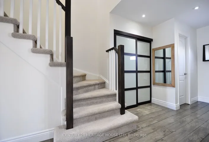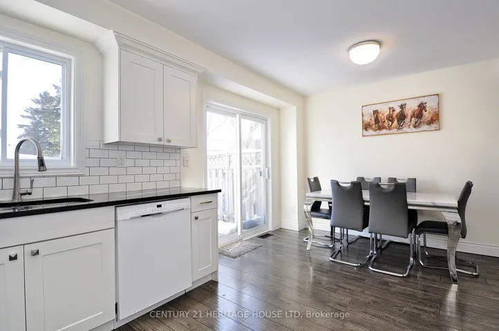 +"PublicRemarks": "Welcome to this beautifully landscaped semi-detached home offering approximately 1,766 sq. ft. of thoughtfully designed living space with stylish, designer finishes throughout. From the moment you step inside, you'll appreciate the hardwood flooring, bay windows, and tasteful accent walls that create a warm and inviting atmosphere. The main level features a cozy electric fireplace, a separate dining room ideal for entertaining, and an open-concept kitchen overlooking the breakfast area, family room, and outdoor living space. Abundant storage and direct access to the garage add everyday convenience.The upper level was smartly converted from four bedrooms to a spacious three-bedroom layout, complete with an oversized laundry room with sink and ironing station. The generous primary retreat easily accommodates a king-sized bed with night tables on the same wall, while the extended bay window provides the perfect space for a home office or lounge. A coffered ceiling with an extended 9-foot feel enhances the sense of space, a generous sized walk-in closet, and the ensuite offers both a separate shower and a relaxing soaker tub. Two additional bedrooms provide excellent flexibility for a growing family, guests, or work-from-home needs. Enjoy your morning coffee or evening unwind on the private balcony off the third bedroom.The finished lower level adds even more living space, featuring laminate flooring, a large recreation room, and additional area suitable for a bedroom, gym, or hobby space. A built-in fishtank adds a calming focal point, while ample storage and a cold cellar complete the level. Enjoy the convenience of the new 3-piece bath that is plumbed but requires connection. Step outside to your backyard oasis, fully finished with concrete flooring, a hot tub under a gazebo, dedicated cooking area, and an oversized shed - an ideal setting for relaxing or entertaining year-round."