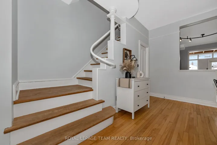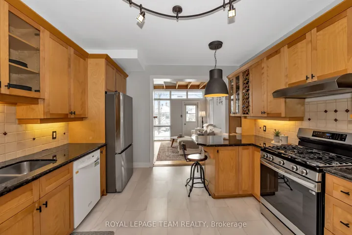 +"PublicRemarks": "Bright and inviting home in sought-after Old Ottawa East. Larger than it appears, this carpet-free home features hardwood flooring throughout, high ceilings, architectural details, updated fixtures, and generous living space. The well-designed kitchen includes a built-in wine rack and new appliances (fridge, gas stove, hood range - 2025). The sun-filled family room offers a wood burning fireplace, skylight, radiant heated floors, and views of the lush backyard. Upstairs includes two well sized bedrooms, a primary bedroom with 2 piece ensuite, a fully updated main 4 piece bathroom with tile and glass shower plus double sinks (2022), a versatile den overlooking the family room, and convenient second floor laundry with new washer & dryer (2022). Renovated basement (2019) with full bath adds excellent additional living space. New furnace and air conditioner (2025). Fully fenced yard with storage shed. Steps to the Canal, River, Ottawa U, schools, parks, and shops."