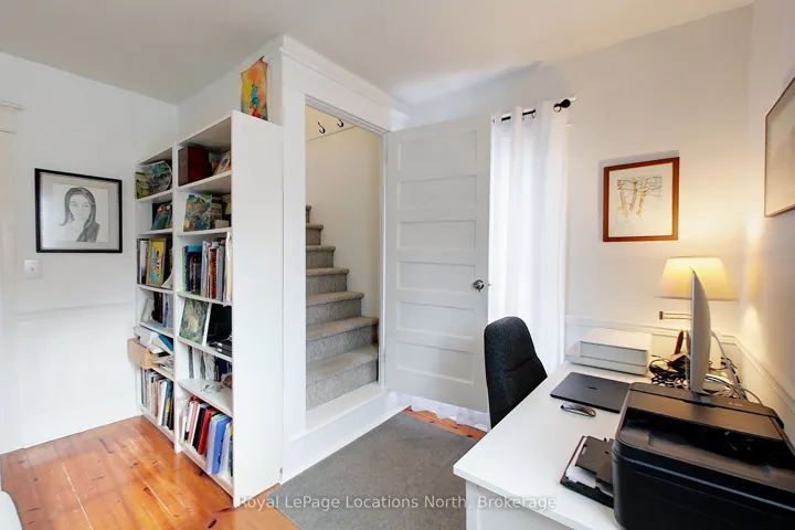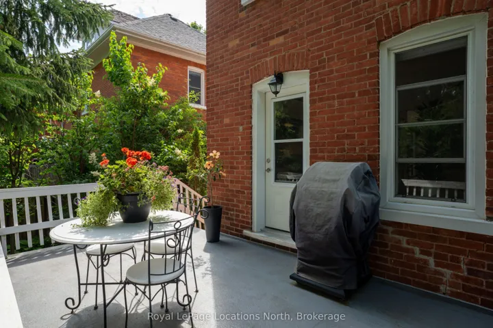 +"PublicRemarks": "Just 1 block from downtown on a tree lined street in Meaford, this home has been preserved yet improved to be efficient, comfortable and long lasting. The large covered front porch is great for quiet relaxation or al fresco dining. The home is bright inside with 9 foot ceilings and large windows. New wide plank flooring in the living/dining area complements the original woodwork and trim. In the living room a gas fireplace with wood mantle keeps the house cozy on cool days. The kitchen has been beautifully renovated with crisp white cabinetry and wood counters. It is spacious enough for a small a island yet still roomy for couples cooking. Extra windows and the door to the private deck allow lots of light. The bedrooms upstairs are comfortable and each have closets plus a smaller bedroom is used as a dressing room. The bathroom has been divided with shower and vanity on one side and the W/C and sink separate. It works! There is an office space with access to the front balcony and to the finished attic. In the attic is a 3rd bedroom and extra sitting area for reading or relaxing."