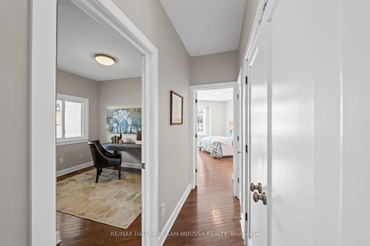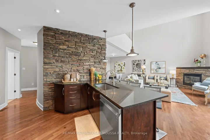 +"PublicRemarks": "Tucked away in the sought-after enclave of Marshes Village, this beautifully upgraded end-unit townhome offers refined living. Thoughtfully maintained and tastefully enhanced. A foyer with Italian tile sets the tone, opening to open-concept living and dining spaces. Soaring ceilings, expansive windows, and a stone fireplace create a warm atmosphere. The kitchen is a standout, granite counters, stainless steel appliances, and generous cabinetry, all designed with beauty and practicality in mind. A dedicated office, renovated powder room, and laundry area enhance the main level. Off the main living area, a screened-in porch with a gas hookup for BBQ overlooks the back garden. The primary suite is a true retreat, with a large custom walk-in closet and a stunning spa-inspired ensuite. Upstairs, a versatile loft with two closets and a full bath provides flexible living space, ideal for a guest suite or reading nook. Oak hardwood flooring runs throughout, including all three staircases. The finished walk-out lower level offers even more flexibility with a second family room, a spacious bedroom overlooking the garden, a walk-through closet, and a beautifully renovated full bath. This level also features floating oak flooring, adding to the comfort throughout. Outside, professional landscaping enhances the front and rear gardens, a large cedar deck and elegant stone patio provide the perfect backdrop for outdoor entertaining. Recent upgrades include new roof tiles and new wooden front steps. Situated next to the prestigious Marshes Golf Course and just minutes from Kanata Norths high-tech hub, the Brookstreet Hotel, DND, the 417, local shops and restaurants, the Richcraft Rec Complex, and nearby pickleball courts, this home offers a luxurious lifestyle in one of the city's most exclusive communities. Marshes Village Homeowners Association fee is $196/month covers road snow removal, landscaping, general maintenance, audit and insurance with a reserve fund for future needs."