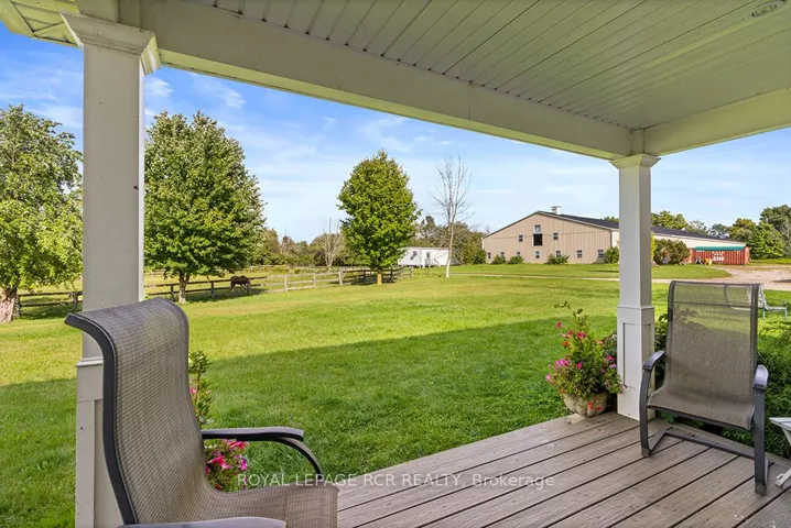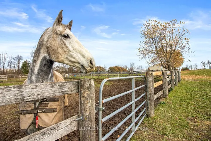 +"PublicRemarks": "Where Horse, Home, and Heart Align. Set among premier horse farms in elite equestrian country, this exceptional 49-acre estate is designed for those whose days begin in the barn aisle and end planning the next ride. Ten lush paddocks with frost-free hydrants and hydro support seamless, year-round horsekeeping, while the insulated, ventilated 20-stall steel barn features a heated tack room, wash and grooming stalls, feed room, 3-piece bath, & hay storage above with convenient drops - efficient and rider-friendly. The attached 76' x 160' indoor arena with operable windows allows consistent training through every season, perfect for winter miles and polishing flatwork. Outdoors, a large jumping field, 150' x 200' sand ring, and grass dressage field support show-ready schooling to relaxed hacks, while two productive hayfields enhance self-sufficiency. The 1997-built residence offers comfort after long days in boots and breeches, with hand-scraped wide-plank hickory floors, 9' and cathedral ceilings, and abundant natural light. The updated chef's kitchen with Wolf cooktop, leathered granite counters, and generous island opens to the dining area and Great Room with beamed cathedral ceiling. A main-floor bedroom with ensuite adds flexibility; upstairs are three additional bedrooms and updated baths with heated floors and towel warmers. The primary suite includes a dressing room, custom walk-in closet, and spa-inspired ensuite. Walk-out lower level awaits future plans. Upgrades include a 2024 cold-climate heat pump with propane furnace backup, Generac generator supporting essential farm systems, and newer Goodfellow siding. Minutes from Angelstone, Meadowlarke North, and Palgrave-where life with horses feels perfectly in stride. A thoughtful layout keeps routines efficient, from first feed to final night check, with easy flow between barn, arena, & home-ideal for competitors or passionate riders seeking a turnkey property ready to enjoy from day one. Ready to tack up now."
