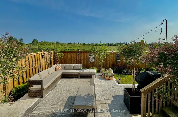 +"PublicRemarks": "Welcome to this fabulous upgraded home which was originally the builder's model home! Take a video tour at: https://www.youtube.com/watch?v=VJnp T5c5Y9I This home offers a true upscale feel with over 2400 sq ft of above grade living space plus the professionally finished basement. 9' ceilings on the main floor. The gourmet eat-in kitchen provides a real wow factor with granite counters and backsplash, a large centre island / breakfast bar, extensive cabinetry, full pantry/display cabinets with elegant wire mesh inserts, high-end lighting fixture and pendants. The kitchen breakfast area walks out to the extended custom deck (approx. 2 years), fully landscaped in 2024 with 4 trees, poured concrete front to back, French curbs on driveway, and fully fenced back garden and views of fields and farm buildings. The great room off the kitchen is ideal for entertaining family and friends with a gas fireplace, tray ceiling, and huge window overlooking the garden. The over-sized formal dining room with tray ceiling is currently being used as an additional sitting area. Solid oak stairs with wrought iron pickets lead to the second floor featuring four spacious bedrooms and the upstairs laundry room with laundry tub. The primary bedroom has a large walk-in closet and L-shaped ensuite with separate shower and freestanding tub. All bedroom closets have built-in closet organizers. The third bedroom has semi-ensuite access. The basement is finished with an open recreation area, separate den/office, 5th bedroom featuring 4 windows (2 large above grade, lookout windows), 3 piece bathroom, and a cold cellar. Recessed lights throughout are LED. The double garage has direct inside access and a storage loft. Recent fiberglass front door was installed. This home is immaculately maintained and was freshly painted."