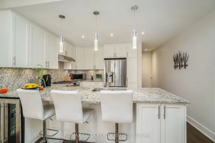 +"PublicRemarks": "Immaculate end unit bungalow in Chapel Hill South, corner of Renaud Rd and Pagé. NO STAIRS to get in. Main level entry. This unit features 3 bedrooms, 3 full bathrooms over 2523 sqft of living space. Open concept plan w/hardwood, 9ft ceilings & exquisite light fixtures. Gorgeous kitchen w/granite countertop & backsplash. High end appliances including DUAL ZONE wine & beverage fridge, dual zone gas oven. Under cabinet lights, soft close drawers. Patio w/mini garden, gas bbq hook up. Large master has room for king size bed, California Closets walk-in, ensuite w/glass shower, granite vanity & built in hamper. California shutters on most windows. Pet friendly complex. 2 parking spots right out front. This is a Smart Home, ready for Amazon Alexa or Apple Siri. Lots of Lutron light switches, smart Ecobee thermostat, wireless cameras, front door keypad with camera. Laundry can be relocated to main floor behind the walk-in closet as per builders original plan. All gym equipment is available for separate purchase. 2 minute walk to Family Dental clinic. 15min drive to The Forge Pickleball Club. 12mins to Orleans Tennis & Pickleball Club. 7 mins to Chapel Hill South Park & Ride."
