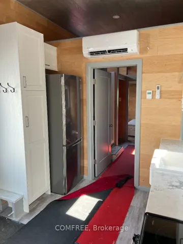 +"PublicRemarks": "Step into comfort, style and sustainability in every square foot. Soft natural light pours through the many windows. The open concept kitchen is fully equipped with stainless steel appliances, spacious living area, and energy-efficient construction to keep your bills low. The kitchen includes a fridge, stove, microwave. Plenty of cabinetry and countertop space. Sits 3 at the counter. The living room has an area for a couch and TV for entertaining. There is also a storage loft above the living room. The interior walls are engineered maple tong and grove board, and the bathroom includes a shower, toilet and a 48" countertop and sink. The washroom also has a combo washer and dryer. The bedroom fits a king-size bed. There is also a storage loft above the bedroom. The space is cozy, despite Ontario's bone-chilling winter. And it all fits into a compact building that is 560 square feet in size. Equipped with an efficient split heat pump for warmth in wintertime and AC in summertime. In floor heating keeps the toes warm. All our homes are certified with CSA A277MH (modular home) which complies with all the municipality codes across Canada. All our homes are built for all 4 seasons, ensuring cozy living no matter what the weather. Land lease is 555.00+hst per month."