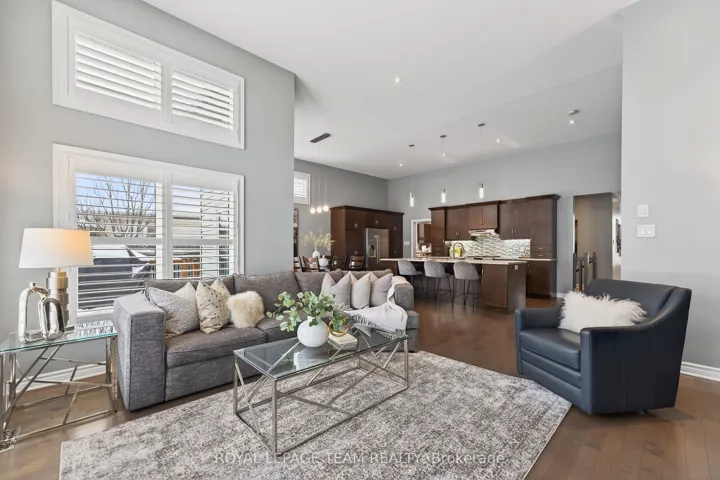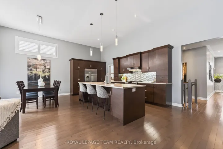 +"PublicRemarks": "Welcome to 834 Rockson Crescent - a highly sought-after custom-built Metric home offering 3+1 bedrooms and 3 full bathrooms, thoughtfully designed for both comfort and style. From the moment you enter, you're greeted by a bright and inviting foyer with tiled flooring that transitions seamlessly into rich hardwood throughout the main living space. Soaring 12-foot cathedral ceilings create an airy, open atmosphere that enhances the home's natural light and architectural presence. The open-concept kitchen and living area is beautifully appointed with elegant window shutters, a striking natural gas stone fireplace, and a functional island with abundant counter space. A rare oversized walk-in pantry provides exceptional storage and everyday convenience. The main level also features convenient laundry, inside access to the garage, neutral tones throughout, two linen closets, and three generously sized bedrooms. The serene primary retreat offers 9-foot ceilings, a walk-in closet, and a spa-inspired ensuite complete with double sinks, a spacious walk-in shower, and slate-colored ceramic flooring. Upgrades include 33" doors for mobility (with exception of 2 front bedrooms). Enhanced soundproof insulation in select main-floor walls and the lower level adds an extra layer of comfort and privacy. The finished lower level, complete with Berber carpeting, includes a fourth bedroom with a generous closet, a full 3-piece bathroom, and a large recreation room ideal for a home gym, media space, or flexible family living. Lower level has rough-in for wet bar or kitchenette. Step outside to an expansive back deck perfect for summer entertaining, along with a functional patio area and fully fenced backyard for added privacy. This property offers a seamless blend of functionality, warmth, and timeless appeal in a desirable neighborhood of Stittsville on a private crescent."