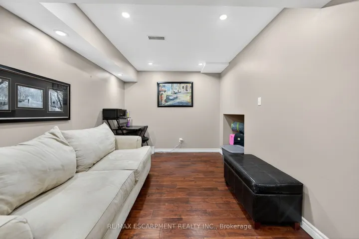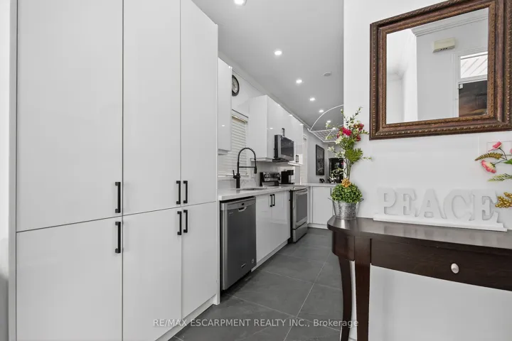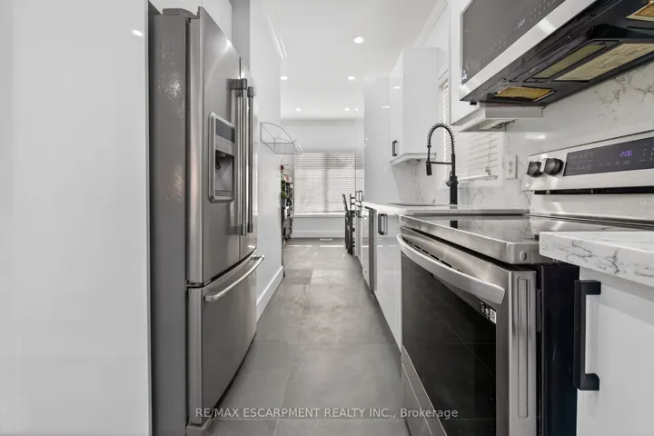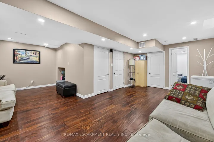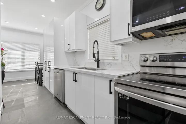+"PublicRemarks": "Walk to Lake Ontario. Just minutes to Winona Crossing and highway access. Perfect for commuters. Great family area with nieghbourhood park. This lovely updated home with bright entryway with lots of pot lighting. Updated kitchen with quartz countertops, loads of extra cupboard space, built in microwave + dishwasher and stainless steel appliances. No carpeting here. Sliding doors from living room to private fenced yard perfect for summer barbecues. Primary bedroom with entire wall of built in dressers and cupboards as well as walk in closet. Updated ensuite with double sink, oversized shower and standalone tub. Work at home with convenient office on upper level. Large rec room with built ins. Extra bedroom on lower level."