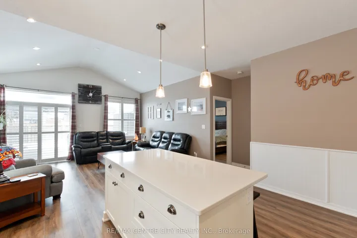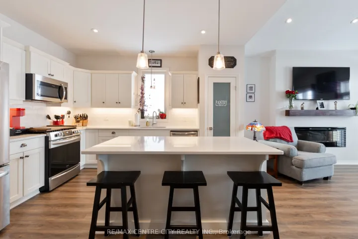 +"PublicRemarks": "This end-unit bungalow townhouse sits on a premium pie-shaped lot and offer 4 parking spaces! Many great features including the open concept main floor with 9 ft. ceilings, a living room with a soaring vaulted ceiling with an electric fireplace, a modern kitchen with quartz countertops, a nice size island with breakfast bar, and a pantry, vinyl plank floors on the main floor and basement. 2+2 bedrooms and 3 full bathrooms (front bedroom is currently being used as a dining room). Master bedroom offering a 3 piece ensuite and a walk-in closet. Lots of additional living space in the basement with the family room, 2 bedrooms, and a full bathroom. Outside you'll enjoy the covered front porch, deck with gazebo, and beautiful landscaping."
