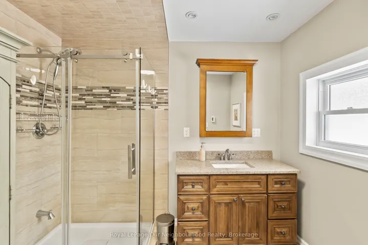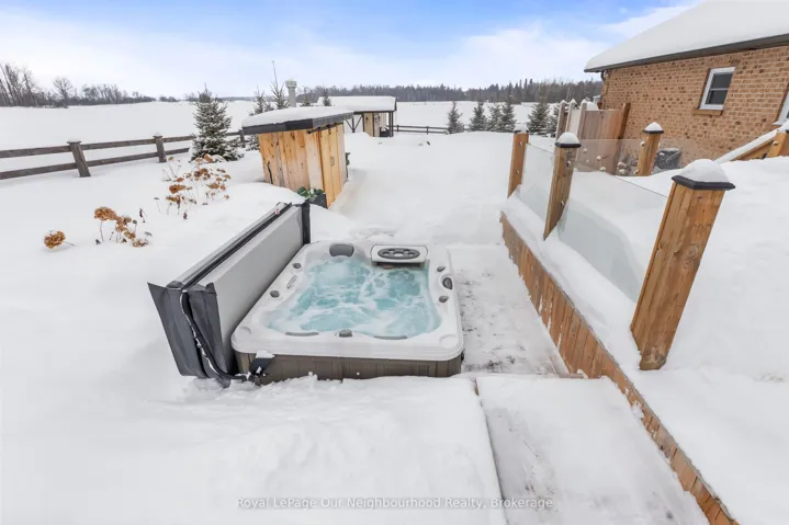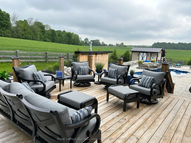 +"PublicRemarks": "Welcome to this stunning country showstopper, where thoughtful updates and breathtaking landscaping create the perfect blend of comfort and style. Inside, the main floor has been beautifully transformed w luxury vinyl flooring, crown moulding, and a neutral designer palette. The kitchen is nothing short of spectacular, showcasing custom maple cabinetry, granite countertops, and a statement 114.5" x 59" island designed to comfortably seat 7. A 36" gas range w chef's wall-mounted pot filler, farmhouse sink, and abundant prep space make this a true culinary showpiece. Seamlessly open to the living area, the space is flooded w natural light and anchored by stunning built-ins and a stone fireplace creating the perfect setting for cozy winter evenings or effortless entertaining year-round. The primary suite includes a w/i closet and private 3-piece ensuite w heated floors. 2 additional bedrooms, w a 5-pc main floor bathrm and a dreamy laundry room including built-in storage, a laundry wet bar & garage access complete the main floor. A resort-inspired backyard retreat that truly takes your breath away, featuring manicured landscaping, a 6-ft deep inground fiberglass saltwater pool w waterfall feature, hot tub, expansive stone patio, and multiple entertaining zones-all set against breathtaking views of rolling countryside. Enjoy sun-soaked days and peaceful evenings w complete privacy on this stunning 1-acre lot. The lower level offers impressive versatility w 3 separate entrances, a full in-law suite, and approx. 9-ft ceilings. The second kitchen features handcrafted cabinets made from cedar trees milled on the property by the original owners, a 4-pc bathroom w it's own laundry, a gym, office, 2 bedrms, 2-piece bath, and cold rm. The heated garage is a hobbyist's dream, w 10-ft doors, a 100-amp subpanel, and ample height for lifts or storage. This property truly has it all, a beautiful blend of modern finishes, country charm, and incredible outdoor living."