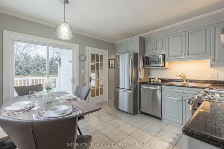 +"PublicRemarks": "Welcome home to 18 Dexter, a tastefully renovated gem in the much sought-after Ridley neighbourhood. Having noted the newly painted exterior of this charming home, you'll walk in through new fibre glass doors into an inviting foyer before entering into an elegant open-concept living space with custom crystal chandelier and sconces, perfect for family gatherings, hosting in the bright dining room, and tranquil relaxation by the fireplace. Then enter a beautifully renovated eat-in kitchen boasting new stainless-steel appliances, granite countertops, and modern grey cabinetry. Off the kitchen you'll find a spacious laundry room with lots of pantry storage. Feeling like some time in nature? This property has much to offer, including a custom raised deck off the sliding glass doors in the kitchen, a lower patio with a gas line for agas barbeque, and a beautifully landscaped back-yard with aluminum-edged garden beds, all fully enclosed by a new fence dotted with automatic outdoor lighting. When it's time to winddown, this home offer three bedrooms with lovely windows for natural light and a modernized bathroom with sparkling granite countertops and extra storage. Beyond 18 Dexter's own pleasing walls lie good schools, parks, shopping, and restaurants, all within walking distance! Not to mention the five-minute walk to the GO station for commuters. If walking isn't your preference, this property also includes a driveway with space for two cars. Investors should also note the separate basement entrance. Other notable features include crown moulding, high solid wood baseboards, excellent basement storage, a custom closet in the master suite, and antique bevelled glass leaded windows."
