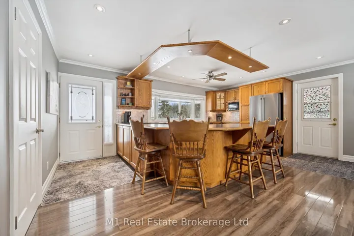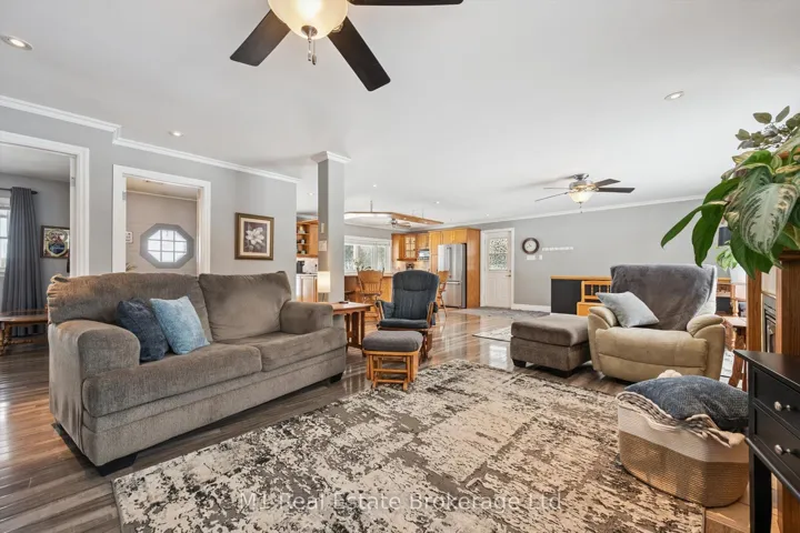 +"PublicRemarks": "This rare and picturesque 2.9-acre property in Woolwich, offered for the first time in 40 years, presents an exceptional opportunity to enjoy space, versatility, and country charm. The well-maintained 4-bedroom bungalow features large windows that fill the home with natural light, an inviting family room gas fireplace, along with a den, two bathrooms and main floor laundry, this home offers comfortable and flexible living for families or those working from home.The heart of the home is the gorgeous, oversized kitchen, complete with new stainless steel appliances (2025) and an abundance of cupboard and counter space-perfect for hosting, cooking, and gathering with family and friends.The unfinished basement with a separate entrance provides outstanding potential for additional living space, an in-law suite, or income opportunities. Step outside to the back deck with a covered hot tub, ideal for relaxing and entertaining year-round.The property's exterior amenities are equally impressive, including a detached two-car garage, an oversized gravel yard ideal for parking equipment, trailers, or multiple vehicles, a storage barn suitable for a chicken coop, and a 1/2 acre partially fenced pasture. The star of the show is the impressive 35' x 80' insulated shop, making this property ideal for hobbyists, tradespeople, or home-based businesses. A rare offering with endless possibilities, just minutes from town conveniences."