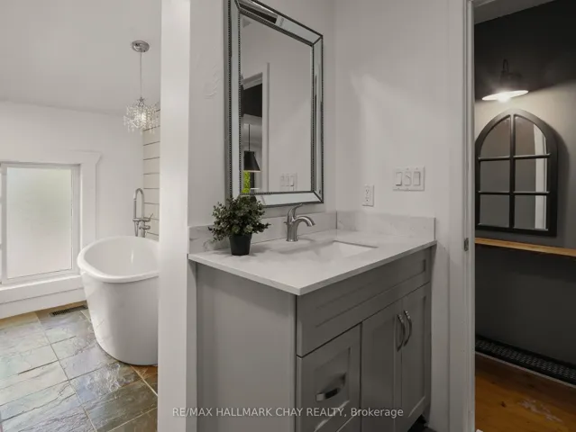 +"PublicRemarks": "Situated in the charming community of Horning's Mills, this beautifully updated home sits on a beautiful one-acre lot with expansive countryside vistas. The property offers an ideal blend of small-town character and private, relaxed living. Enjoy your mornings and evenings on the inviting front porch, perfectly positioned to take in the serene natural surroundings. Inside, the well-planned layout includes a main-floor primary suite, providing convenient single-level living suitable for both downsizers and growing families. The newly renovated main bathroom is a highlight, featuring a luxurious clawfoot soaking tub and a modern glass-enclosed shower. The second level offers two additional bedrooms and a convenient two-piece bath, creating an excellent space for family or guests. The kitchen and dining areas connect seamlessly, with the adjacent living room offering a warm, functional setting for everyday living and entertaining. Outdoors, a detached garage enhances the property with added storage and workspace potential.This move-in-ready home captures the best of small-town living in one of Dufferin County's most welcoming hamlets-an opportunity not to be missed."