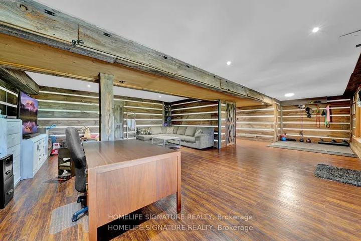 +"PublicRemarks": "Escape to serenity your dream retreat (8.56 Acres) on the edge of Amaranth, just minutes from Shelburne. This unique 3 Bedroom Bungalow offers peace, privacy, and plenty of room to entertain. The open-concept layout offers a seamless flow into the living area, highlighted by a cozy electric fireplace and elegant herringbone-patterned porcelain tiles. Main floor features a custom kitchen with granite countertops, soft-close cabinetry, and premium appliances. The generous dining area showcases panoramic views eastern exposure overlooking a peaceful pond and southern views of your private woodlot. From here, walk out onto the spacious wraparound deck, ideal for morning coffee or hosting evening gatherings. Make the most of summer with a heated above-ground pool and its own expansive, enclosed deck perfect for outdoor entertaining.The fully finished walkout basement is a true retreat, boasting rustic barn board features, a wet bar, pellet stove, 3-piece bath, and a flexible family room that could easily be converted into an extra bedroom or home office. Unwind in the 3-season sunroom with a built-in hot tuba perfect space to relax, enjoy games,and soak in the peaceful setting.With stunning views of your own pond and shoreline, this property offers the best of both worlds: an entertainers haven and a quiet countryside escape. You can canoe, kayak, or fish at your leisure right from your backyard.The property comes with a 1-acre tree farm where the owner has planted over 500 young seedlings, offering both beauty and future growth potential."