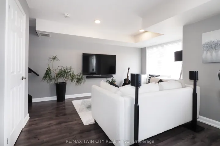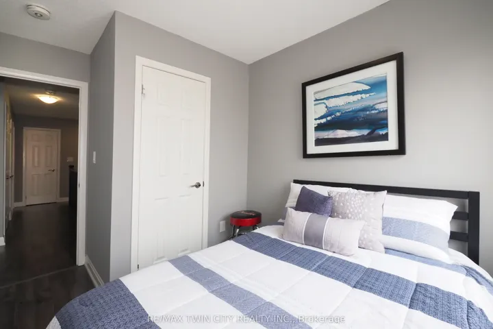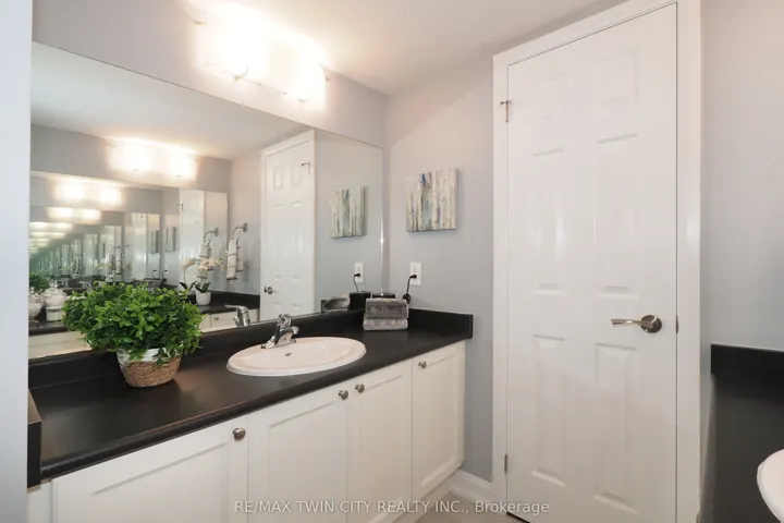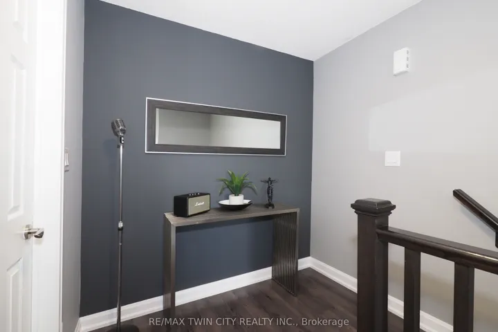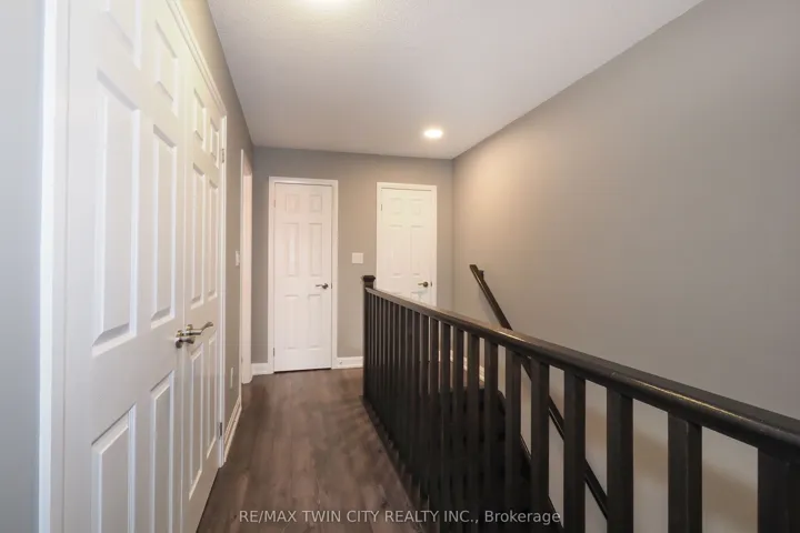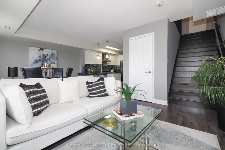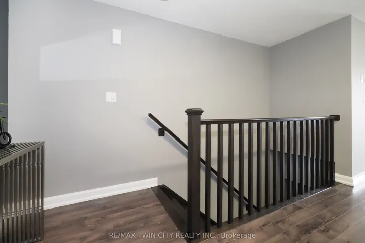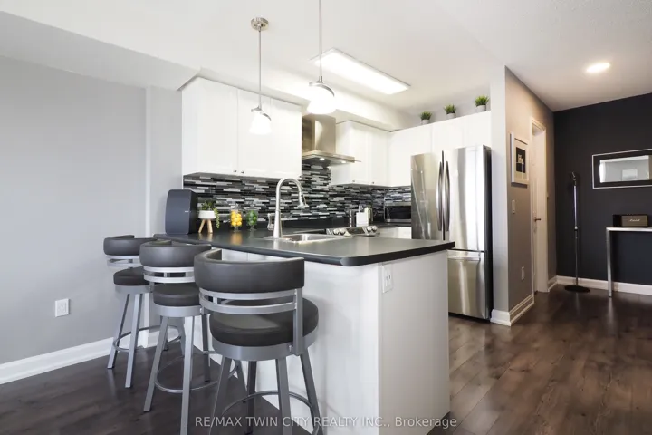 +"PublicRemarks": "Welcome home to this beautifully cared-for two-storey condo in the heart of Hespeler, Cambridge perfect first step into homeownership or a smart, low-maintenance move for any stage of life. Step inside to a modern, open concept layout designed for everyday living and easy entertaining. Dark wide-plank flooring flows throughout the main level, setting the tone for a stylish kitchen featuring crisp white cabinetry, a glass tile backsplash, stainless steel appliances, and a breakfast bar with pendant lighting, ideal for morning coffee, quick meals, or hosting friends. Oversized windows flood the living and dining space with natural light, creating a warm, welcoming atmosphere you'll love coming home to. Upstairs, you'll find two generous bedrooms and the convenience of upper-level laundry with a full-sized front-load washer and dryer. The primary bedroom offers a private walk-out balcony, your own quiet spot to unwind at sunset or start the day outdoors. A full bathroom with a faux granite-style vanity and tile flooring completes the upper level, while a handy 2-piece bath on the main floor adds everyday practicality. Parking is included, and the location truly delivers. You're just minutes from downtown Hespeler's shops, cafés, parks, and scenic river trails, with quick access to Highways 24 and 401 making commutes to Guelph or Kitchener under 15 minutes. Move-in ready, thoughtfully designed, and set in one of Cambridge's most charming and connected communities, this condo checks all the boxes for first-time buyers, investors, and downsizers alike."