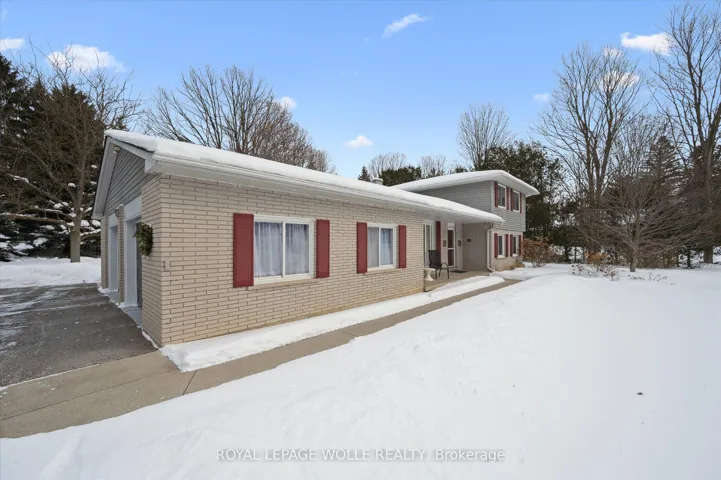 +"PublicRemarks": "**OPEN-HOUSE SATURDAY/SUNDAY FEB 14/15th from 2 to 4 PM* Discover comfortable country living in the quiet, highly desirable community of Conestogo, just minutes from Waterloo, St. Jacobs Farmers' Market, golf courses, shopping, restaurants, and scenic walking trails. This well-maintained side-split sits on a private, treed lot just under one acre, offering space, privacy, and a peaceful setting. The home features 3+1 bedrooms, an extra-wide attached double-car garage, and a large driveway with parking for up to 12 vehicles. A welcoming concrete porch leads into a bright interior with a well-designed layout and an abundance of natural light. The updated kitchen offers ample cabinetry and storage, a reduced-height baking station, and a beautiful view of the backyard. The dining room walks out to a newer deck that is partially covered by a UV protective roof, ideal for summer entertaining and outdoor enjoyment. Generous living areas provide comfort and flexibility, including a spacious living room, dining room, and a cozy family room with a gas fireplace. Every window overlooks the surrounding natural landscape, enhancing the home's calm, country feel while remaining close to everyday conveniences. Numerous updates have been completed, including new plumbing (2026), heat pump and furnace (2022), roof (2023), drilled well (2021), septic system (2014), RO drinking water system (2022), and much more. A unique chance to experience tranquil living while staying close to everyday conveniences, truly a home not to be missed."