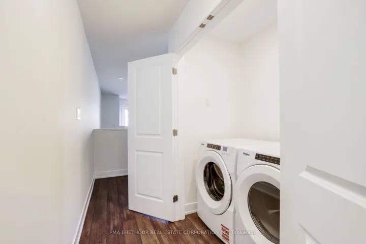 +"PublicRemarks": "Welcome to this beautifully upgraded executive townhome. Located in a highly sought-after community just minutes from Highways 403 and 407, and steps from shopping, dining, and everyday conveniences. This spacious 3-storey home boasts upgraded hardwood flooring on the main level and a solid oak staircase. The bright and open second level features a sleek kitchen with stainless steel appliances, quartz countertops and upgraded backsplash and light fixtures. The kitchen flows seamlessly into the dining and living area which boasts a stunning stone feature wall. Step out onto the balcony for a perfect extension of your living space. Upstairs you'll find two bedrooms, with the primary bedroom offering a closet and a private 3-piece ensuite. The home offers an expansive rooftop terrace an entertainers dream with sweeping views. The ground level features a dedicated laundry area, interior entry from the garage, and additional storage space."