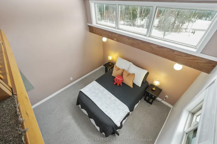 +"PublicRemarks": "Set on just over two acres, only a short distance from Rice Lake, this spacious family home offers a distinctive layout and breathtaking panoramic views. Designed to embrace light, space, and the surrounding landscape, it delivers the perfect balance of comfort and country charm. The main living area features an open-concept kitchen and dining room highlighted by vaulted ceilings and upper windows that flood the space with natural light. Walkouts lead to an expansive deck that extends the living area outdoors, creating an ideal setting for entertaining and al fresco dining. The kitchen is well-appointed with ample cupboard space, a large island with a breakfast bar, matching appliances, and a wall-mounted oven. A few steps down brings you to the sunken living room, where high ceilings and oversized windows showcase the scenery and fill the room with light. A cozy window reading nook with exposed wood beam adds warmth and character. The main level also offers a generous primary suite with vaulted ceiling and walkout to a private deck. Two additional bedrooms, one featuring a charming loft space, and a full bathroom with walk-in shower enclosure and separate tub. The lower level includes a spacious family and games room with walkouts, a stove-style fireplace, guest bathroom, and laundry area, making it ideal for gatherings or extended family stays. Outside, enjoy a spacious back deck and expansive green space on a beautifully tree-lined property. With close proximity to Rice Lake and the Northumberland Forest trails, this home delivers the peaceful country escape you've been searching for."