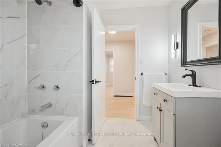 +"PublicRemarks": "Beautifully renovated 3-bedroom, 1-bathroom home on Mohawk Road in Hamilton! This property boasts a modern kitchen with stainless steel appliances, granite look countertops, and custom cabinetry. The open-concept living and dining areas feature contemporary finishes and abundant natural light. Enjoy the spa-like bathroom with sleek design and high-quality fixtures. Each bedroom is generously sized, perfect for family living or a home office. This home is truly move-in ready. Includes one dedicated parking spot and is conveniently located near schools, parks, LINC, shopping centres, public transit and all other amenities"