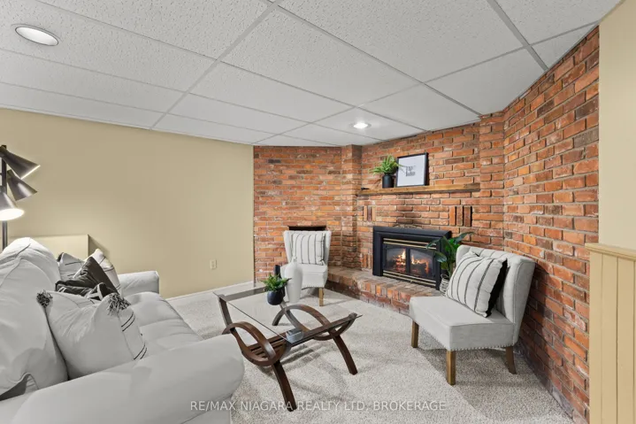 +"PublicRemarks": "Charming 1&1/2 storey home in one of Port Colborne's most convenient and desirable locations, situated on an impressive 49 x 223-foot lot backing onto a park and baseball diamond, offering no rear neighbours. This well-laid-out home provides approximately 1,650 sq. ft. of above-grade living space, plus a walkout lower level with excellent in-law or secondary suite potential. Outstanding curb appeal featuring updated vinyl siding, a durable metal roof, and a modern front door sets the tone before you even step inside. The bright, open-concept living and dining area is perfect for both cozy family evenings and entertaining, highlighted by a striking electric fireplace framed with built-in bookshelves and exposed brick. The sun-filled kitchen features large patio sliding doors that bring in natural light and create a seamless connection to the backyard. The main floor also includes a convenient bedroom that could easily function as a guest room or home office. Upstairs, you'll find two spacious bedrooms, including a generous primary suite with an oversized walk-in closet, along with a well-appointed 4-piece bathroom. The lower level is ideally configured for an in-law suite or potential secondary unit, featuring a separate side entrance and a walkout to the yard. The basement currently includes a large recreation room with a brick gas fireplace, a laundry area, a 1-piece bathroom, an additional room that could serve as a fourth bedroom, and a utility room. Outside, the property boasts a detached single-car garage and plenty of space for outdoor living. Enjoy entertaining on the deck or relaxing under the gazebo, with ample room for play, gardening, or future upgrades. Located directly across from schools and adjacent to the local police station for added peace of mind, and within walking distance to Canal Days, local restaurants, and Lake Erie. A fantastic opportunity to move in, enjoy, and personalize this beautiful home to make it your own."