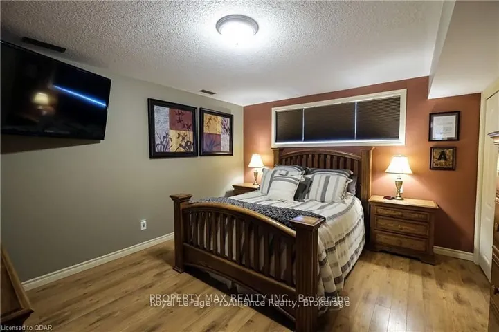 +"PublicRemarks": "This beautifully maintained raised bungalow is nestled on a quiet cul-de-sac in one of Belleville's most desirable neighborhoods, offering the perfect blend of space, comfort, and convenience for families. Step into a bright foyer with direct access to the attached 1.5-car garage, then move up to the spacious open-concept living and dining area featuring vaulted ceilings, hardwood floors, and large windows that bathe the space in natural light. The large eat-in kitchen is equipped with a peninsula, stone and glass backsplash, central vac sweep inlet, and patio doors leading to a deck overlooking a generous backyard-perfect for entertaining and summer barbecues. The main floor also features three well-appointed bedrooms and a 4-piece bathroom with semi-ensuite access. The fully finished lower level offers two additional bedrooms, a laundry/utility room, and a luxurious spa-style bathroom complete with heated ceramic floors, a gas fireplace, hidden TV, two-person air tub with massage jets and chromatherapy lighting, 5.1 surround sound, an 8' walk-in shower, heated towel rack, and stunning custom stonework. A true standout feature is the 23-foot private home theatre, fully outfitted with a projector, screen, recessed lighting, 7.1 surround sound, a receiver system, bar fridge, and a popcorn machine for the ultimate cinematic experience. Located close to the Quinte Wellness Centre, CAA Arena (home of the Belleville Senators), top-rated schools, parks, shopping, public transit, and with quick access to Highway 401, this home offers exceptional lifestyle convenience. Additional updates include shingles replaced in 2018 and added insulation in the basement for improved energy efficiency. A rare opportunity to lease a move-in-ready home that offers both luxury and practicality in a prime location."