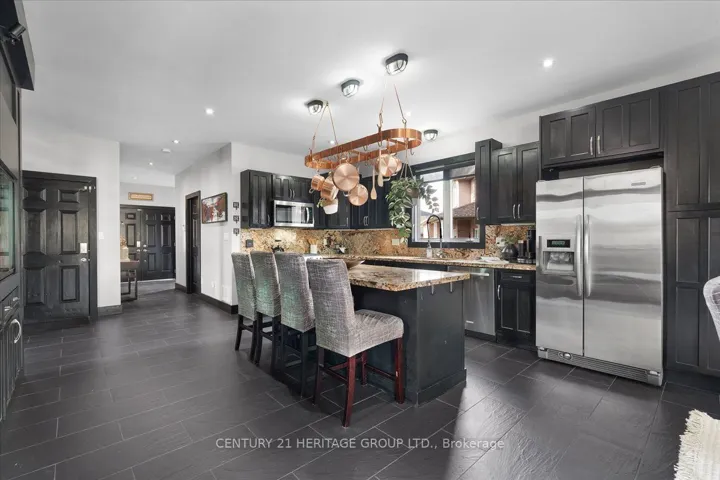 +"PublicRemarks": "One-of-a-kind, only two owner custom home on a rare double lot in a quiet upper Stoney Creek court! This is the kind of property that rarely comes to market. Loaded with custom finishes, outdoor luxuries, and lifestyle upgrades inside and out. Winters have been spent skating on the backyard rink, and summers around the full brick pizza oven with chimney in the outdoor kitchen with Napoleon Prestige Pro 500 BBQ, fully wired with outdoor patio speakers, all set in a private green space. Sleek matching shed with electrical service and double doors featuring indoor/outdoor dog kennel. Integrated security system with LED lighting throughout the property. Step inside to a soaring 2-storey family room with a modern fireplace anchored by a fully plumbed 220-gallon aquarium, the stunning focal point and show piece of the main floor. The oversized kitchen easily fits a 12+ person table and flows into a spacious prep kitchen with granite counters and stainless steel appliances. A bold steel and wood staircase adds a cool industrial vibe. Upstairs, every bedroom has its own ensuite privilege. The main bedroom and ensuite bathroom feature a built-in surround sound system for a luxurious retreat. This home also includes a 104-bottle cantina with an in-wall security safe, Steam Core sauna, and a partially finished basement already equipped for a hair salon. Double car garage with EV charger, double driveway, and just minutes from schools, parks, shopping, movie theatres, and highway access. This isn't just a home, it's an experience. Come see it for yourself."