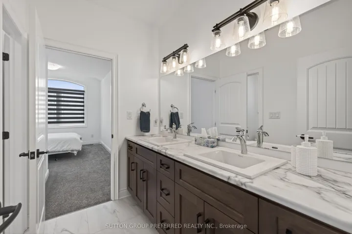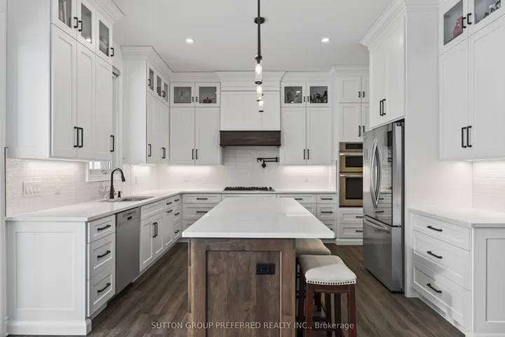 +"PublicRemarks": "A statement of refined luxury, this impeccably upgraded residence offers an exceptional living experience in one of Dorchester's most desirable enclaves. Boasting 6 bedrooms and 4.5 bathrooms and offering over 4400 sq ft of finished living space. Dramatic ceiling heights with 10' main floor ceilings and 9' second floor ceilings set the tone for elegant, light-filled interiors designed for both everyday comfort and elevated entertaining. The main level unfolds through a welcoming foyer into a private home office, a formal dining space, complemented by an expansive butler's pantry and a truly bespoke chef's kitchen featuring an impressive 8' island, quartz countertops, and striking floor-to-ceiling custom cabinetry. Oversized patio doors lead to a covered rear porch, seamlessly blending indoor and outdoor living, while the great room's fireplace anchors the space with warmth and sophistication. A thoughtfully designed mudroom and stylish powder room complete the main floor. The second level is crowned by a serene primary retreat with a custom walk-in wardrobe and a spa-inspired ensuite boasting a freestanding soaker tub, custom tiled shower, dual vanities, and a private water closet. The second level is further enhanced by four additional bedrooms, including a private suite with its own ensuite and walk-in closet, while two bedrooms share an elegantly designed Jack and Jill bathroom. A spacious laundry room completes this level, offering both practicality and refined design. The fully finished lower level with external walk-up access offers outstanding versatility, featuring a large recreation room, kitchen with washer/dryer, bedroom, bathroom and generous storage-perfect for a private in-law suite or potential separate basement rental suite. Ideally positioned just minutes to Highway 401 and London, this extraordinary home delivers luxury, functionality, and lifestyle in perfect harmony, too many upgrades to list, this home is a must see."
