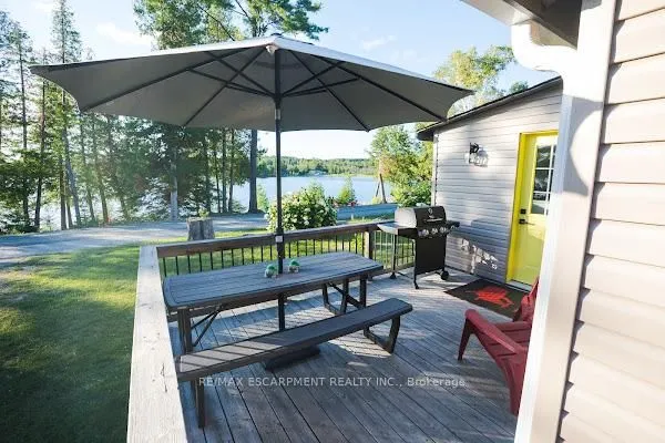 +"PublicRemarks": "Rare Lakefront Offering Featuring Two Fully Renovated Detached Cottages on 1.5 Acres with 200 Ft of Waterfront. An exceptional opportunity for multi-generational living, a private family retreat, or investment income. This versatile property includes two separate cottages, each with direct lake access and shared private dock. Cottage One offers a beautifully updated 2-bedroom, 1-bathroom layout with a bright living area and picturesque lake views, ideal for year-round living or weekend escapes. Cottage Two features 3 bedrooms and 1 bathroom, a spacious living area, full kitchen, and walkout to a private deck overlooking the water - perfect for entertaining or rental potential. Enjoy breathtaking westerly sunsets, swimming, boating, and fishing from your own shoreline. A hot tub is thoughtfully positioned between the cottages, creating a private space to relax and unwind while taking in lake views. For added reliability, the property is equipped with two backup generators servicing both cottages. A unique chance to own a multi-dwelling waterfront property offering privacy, recreation, and strong income potential in a true cottage country setting."