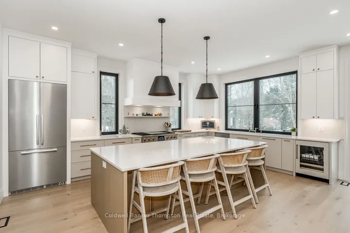 +"PublicRemarks": "Set against the fairways of the prestigious Deerhurst Golf Course, this newly built residence is a striking expression of modern luxury and thoughtfully functional living. Offering 5,000 + sqft, the home features 5 spacious bedrooms and 4.5 spa-inspired baths. From the moment you step through the grand front door, you are greeted by the great room with vaulted wood ceilings, custom stone fireplace, seamlessly opening into the dining area and kitchen. Expansive 9-ft triple-glazed aluminum sliding doors create seamless indoor-outdoor flow. The kitchen is a true statement, outfitted with Monogram, Miele, and Fisher & Paykel appliances; it showcases sleek custom cabinetry, quartz surfaces, a generous island, and a walk in pantry. A striking custom glass wine display adds a sophisticated focal point, while the engineered white oak flooring, 10-ft ceilings, and integrated built-in speakers elevate the space throughout. The primary suite serves as a serene retreat, complete with ensuite showcasing a steam shower, double vanity, Kohler fixtures, and a custom walk-in closet. Step directly onto a private deck from the bedroom, creating an elegant indoor-outdoor sanctuary. With 10-ft ceilings the basement is a luxuriously appointed space, offering 2 bedrooms and 2 bathrooms. A family room provides a relaxing setting while the wet bar allows ease of entertaining. The dedicated theatre room is great for movie nights. Walkout access to the backyard extends living outdoors. This exceptional home blends architectural sophistication with modern comfort. Complete with LP siding, Trex decking, a triple garage with in-floor heating, and thoughtful details such as a mudroom with dog wash station. Every detail of this home reflects refined craftsmanship and sophisticated design, creating a truly exceptional residence on the Deerhurst Golf Course."