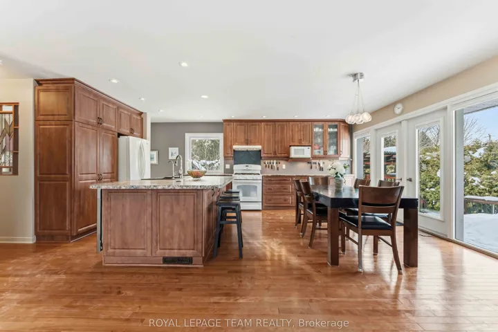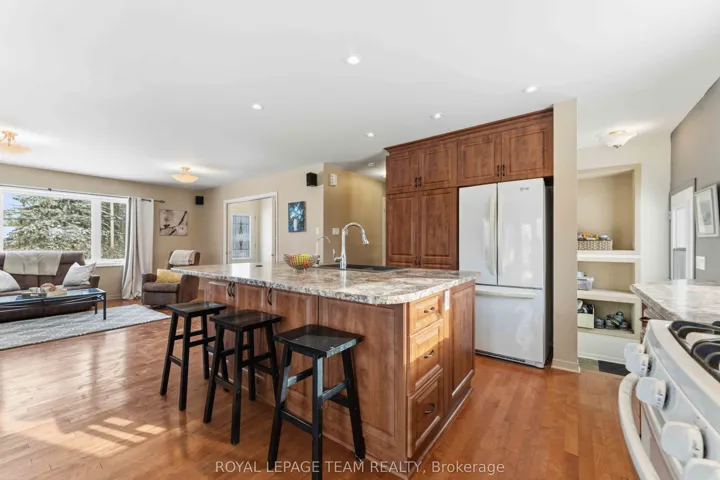 +"PublicRemarks": "Welcome to this beautifully updated bungalow in the heart of the Village of Osgoode! Ideally located just steps from local amenities in a warm, family-friendly community, this home sits on an impressive 100' x 151' lot offering space, privacy, and natural beauty. Designed with comfort and entertaining in mind, the bright open-concept layout showcases rich hardwood floors and a custom kitchen complete with a central island and functional breakfast bar. The spacious living room features a cozy woodstove insert fireplace, providing incredible warmth and ambiance on cold winter nights.The main level offers three generously sized bedrooms with hardwood flooring and a beautifully upgraded 5-piece bathroom. Downstairs, the fully finished basement expands your living space with a large recreation room, additional 4th bedroom, updated 3-piece bathroom with heated floors, and a generous storage/utility room with laundry. Step outside to your own park-like retreat. Enjoy breathtaking sunsets from the custom deck, mature trees, interlock front walkway with pond, a large custom shed, playhouse with electricity, and a gravel driveway with ample parking. This one-of-a-kind property blends thoughtful updates, practical living space, and serene outdoor charm - all within walking distance to town amenities. Welcome home."