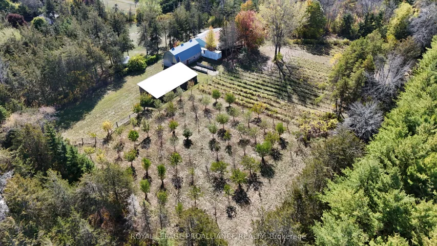 +"PublicRemarks": "At the very end of a quiet laneway, where road noise fades and nature takes over, you'll discover an extraordinary waterfront escape on the shores of Hay Bay. Encompassing 15.6 acres with more than 750 feet of shoreline, this rare offering delivers exceptional privacy, open space, and endless possibility. Renowned for world-class fishing and a popular mooring near Ram Island, Hay Bay is also your gateway to the Bay of Quinte and Lake Ontario. Here, days begin with glowing sunrises over the water and unfold in peaceful rhythm with the surrounding wildlife. All just 15 minutes to Napanee, 20 minutes to Highway 401, and a short drive or boat ride to Prince Edward County. Perfectly positioned to take in panoramic water views from both levels, the 2,000 sq. ft. all-stone bungalow blends timeless design with flexible living. The main floor offers three generous bedrooms and two bathrooms, while the lower level features two additional bedrooms, a third bath, and a roughed-in kitchenette-ideal for extended family or guests. Beyond the home, the property invites you to embrace a true country lifestyle. Explore trails winding through more than 6 acres of white pine forest, gather fruit from your orchard of apples, pears, peaches, cherries, and plums, or cultivate your own vintage from Chardonnay and Vidal grapes sourced from Niagara vineyards. A fenced paddock and impressive outbuildings-including a detached insulated two-car garage, 56' x 30' shop with concrete floor and 12' ceilings, 42' x 22' barn with stalls and hay loft, plus multiple drive sheds-create outstanding potential for hobby farming, homesteading, or a home-based business. Cast a line, set sail, or simply slow down-this is waterfront living on your terms."