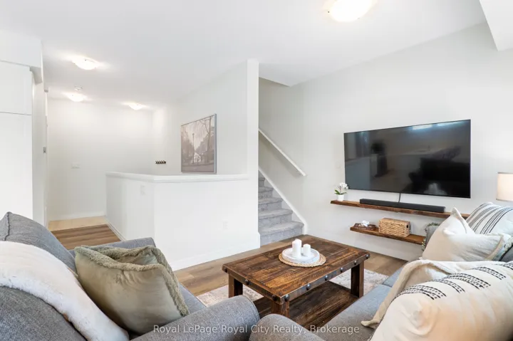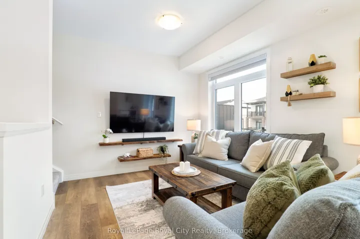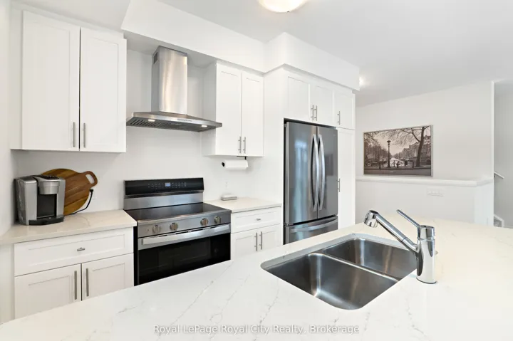 +"PublicRemarks": "83 Thatcher is a stunning end-unit townhome in FUSION HOME's highly sought-after Alister development. This prime location places you just minutes from the University of Guelph, Highway 401, and an abundance of shopping, dining, and everyday amenities. Upon entering, you are immediately welcomed by an abundance of natural light that fills the main floor, a defining feature of this end unit. Expansive windows and glass sliding doors leading to the private balcony create a bright, airy atmosphere throughout the main living space. The kitchen is thoughtfully designed, featuring a four-seat island, stainless steel appliances, sleek countertops, a dual sink, and ample cabinetry and prep space, perfect for both everyday living and entertaining. The living space is open concept to the kitchen, offering an ideal floor plan for entertaining or keeping an eye on young children. With main floor laundry, a convenient two-piece powder room for guests, and a spacious storage closet, this home is both practical and intention in its design. Upstairs, you will find a well-appointed four-piece bathroom and a versatile secondary bedroom, currently used as a home office. The primary bedroom serves as a bright and peaceful retreat, featuring its own private three-piece ensuite and a spacious walk-in closet. From its convenient location and the simplicity of a property with no outdoor maintenance, 83 Thatcher invites you home."