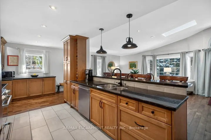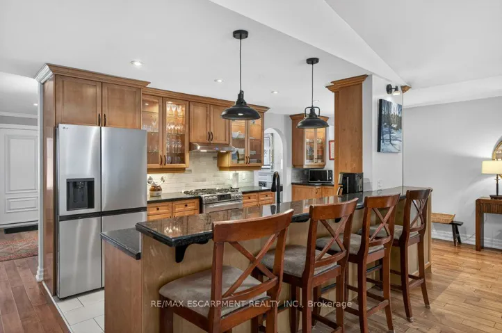 +"PublicRemarks": "Elegant, Timeless, Classy...are just beginning to describe this 2350 sq. ft. bungalow on Ancaster's most coveted street, Lover's Lane. Remarkably unassuming and private, yet filled with wonder! The home was completely transformed and nearly doubled in size in 2008 by reputable local architects and builders, Jim and James Ling. The design maximizes the layout and function of the original footprint, while the rear addition seamlessly blends in a great room, dining area with vaulted ceilings + skylight, and your spacious primary retreat.The home exudes warm and natural finishes that include: hand-scraped maple throughout the main floor, maple cabinetry and granite countertops in the kitchen and a mixture of slate and marble tile in the bathrooms. Enjoy your natural backyard Oasis with stone patio, plenty of grass/gardens, lush foliage, spruce tree line, 40' I/G saltwater pool and hot tub right outside of the primary bedroom. You're steps away from the Old Ancaster core, where you'll find charming stone century buildings in the form of pubs, restaurants, coffee shops, churches, and local businesses. Nature lovers will appreciate the short drive and access to Sulphur Springs Rd and the Dundas Valley trail system. Make this your 'Forever', right-size today!"