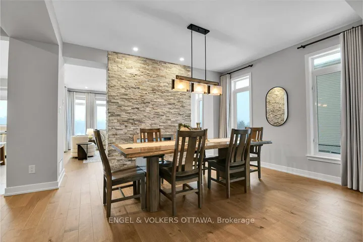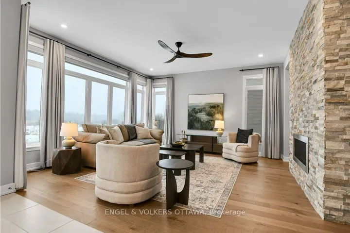 +"PublicRemarks": "This beautifully appointed family home is sited on a prime lot and is designed with tall walls of glass, featuring additional clear-story windows that open onto an almost "cinematic view" of the ponds and the Mer Bleue conservation landscape beyond. The relaxing sensation created by the views can be enjoyed whether from the kitchen with a walkout to the upper deck with glass railings, the main seating area, or the primary bedroom suite. The generous open floor plan on the first level creates a grand space for entertaining large groups. The open foyer with 9 ft ceilings is flooded with light from glass on two sides and integrated with an open dining space anchored with a handsome gas fireplace and stone demising wall. A separate office on this level is away from the hub of the household, creating an ideal home office space and overlooks the covered verandah and street beyond. The second level is the "family space" with a bonus family room or a 5th bedroom if desired. The primary is generously appointed and offers exceptional views of the green space and a well-appointed ensuite boasting elegant light fixtures, a floating soaking tub, a glass shower enclosure and a double vanity, as well as a separate commode. 3 other bedrooms on this level are generously scaled. The finished lower-level walkout offers a private and covered outdoor space that is handsomely landscaped and finished. The outdoor cabana is "high level," and you may consider converting it into an outdoor bar area/kitchen, as the rear garden is polished and nicely landscaped with no side or rear neighbours. Plumbing is available on this level for an additional bath. This home is beautifully finished, meticulously maintained and is for the most discerning of buyers."