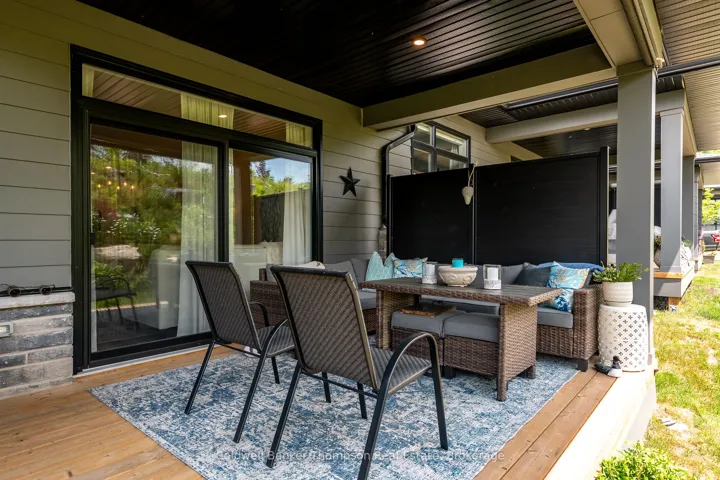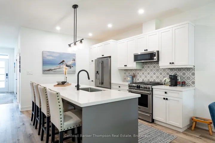 +"PublicRemarks": "Welcome to this beautifully upgraded bungalow townhouse in the sought-after Highcrest community, built by Edgewood Homes. Thoughtfully designed and tastefully finished, this home offers a modern exterior with a stylish blend of grey stone and wood siding and a welcoming covered front porch. Step inside to discover an open-concept layout that seamlessly combines the kitchen, dining, and living areasideal for both everyday living and entertaining. The kitchen is a standout, featuring quartz countertops, stainless steel appliances, abundant cabinetry, and an oversized island with seating and a built-in sink. The living room is anchored by a shiplap-accented electric fireplace and oversized sliding doors that open to a private back deck, creating a perfect indoor-outdoor flow. The spacious primary suite is tucked at the back of the home and includes walk-through closets leading to a 3-piece ensuite with a step-in shower. A guest bedroom and a 4-piece bathroom are positioned at the front of the home, offering privacy for visitors. The main level also includes a laundry/mudroom with inside access to the single-car garage. Carpet-free throughout, the home exudes clean, modern comfort. The fully finished basement adds even more living space, with a third bedroom, a stylish 3-piece bathroom with a step-in shower, and a generous recreation room featuring another electric fireplace and warm shiplap accents. A custom wood bar creates a cozy entertaining space, while an adjacent office provides a quiet spot to work from home. At the back of the lower level is a massive storage and utility room, neatly tucked out of the way. With natural gas forced-air heat, central air conditioning, municipal services, and fibre optic internet, this home combines charm, functionality, and modern convenience in one lovely package."