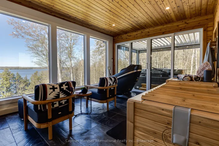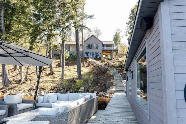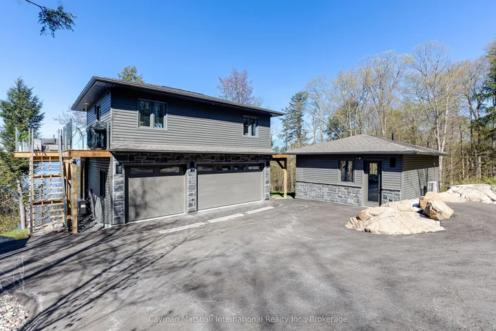 +"PublicRemarks": "Stop scrolling-this is the one buyers wait years for. A newly built (2019) lakefront showpiece that delivers privacy, luxury, and jaw-dropping long lake views from nearly every room. Designed to impress & built to last with an ICF foundation and walls of glass, this is where modern craftsmanship meets Muskoka's raw natural beauty. Inside, the 4-bed, 3.5-bath main cottage is a masterclass in upscale comfort-wide-plank hardwood, a sleek biofuel fireplace, and a bright, open-concept layout built for unforgettable entertaining. The walkout lower level adds serious value with 3 bedrms, a full recreation space, wet bar, office zone, and second fireplace. Step outside and it only gets better. Professionally landscaped grounds lead you down a stunning granite staircase to your private waterfront fire pit, sun-drenched dock, and finished boathouse with kitchenette and handy eco-washroom. A space that allows you to spend the entire day at the dock. Need more? You get it. A fully self-contained coach house above a heated triple garage offers guests their own upscale escape with kitchen, living space, 2 bedrms, and bath-all with elevated, panoramic views. In addition to that, there's the wellness retreat: a separate outbuilding with gym, indoor sauna, spa/studio space, and a covered patio with drop-down screens and hot tub overlooking the lake. Four-season enjoyment, fully equipped and dialled in. As they say, "location, location!" and this is it. Minutes from downtown Huntsville, the gateway to the famous Algonquin Park. Here you can find everything you need, including a year-round, vibrant, and delicious food scene, local events and activities, shopping, and so much more. Set on Lake Vernon-quiet, scenic, and connected to a 4-lake chain system, with direct boat access into Huntsville-this is more than a cottage. It's a complete lifestyle package. The lake is calling you. Opportunities like this are rare. Act fast, bring your best, and make it yours."