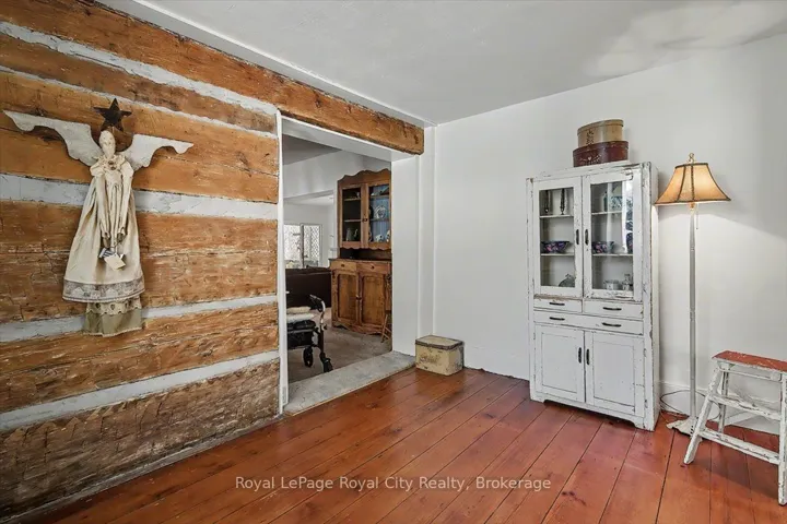 +"PublicRemarks": "Where do I begin with this special property? The Sellers are ready for their next chapter and say sell! Set on a 1 acre lot minutes to 401 access, this unique offering gives an inviting living space while also presenting an opportunity to work from home. Circa 1800's log home with a living room addition, you'll appreciate the character that has been retained with exposed log walls and warm wood floors. Upon entering, there is a nice mudroom off the driveway with a convenient laundry room adjacent to it. This leads into the living room with its beautiful woodburning fireplace. A den off the living room takes you into the original home with its lovely dining room, eat-in kitchen with door to the large front porch and there a 3pc bathroom that has a clawfoot tub. A sunroom off the rear of the house is the perfect spot to host summer meals. The upper floor has a spacious primary bedroom with lots of closet space and a pleasant surprise in the form of a 3pc ensuite! 2 additional bedrooms share this level. The backyard makes you forget you are actually in the City! Backing onto conservation land with tall trees, a 10' x 10' plunge pool that is 4' deep and tennis court. This is where you will be spending many hours in the summer... even a fire pit for making smores under the stars. The detached garage ... not only can you park your cars in it, there is an L-shaped storage room behind as well as a workshop area with access to the pool area that could be transformed into a cabana! Upstairs hosts a games room on one side and an oversized office with skylights and a 3pc bath on the other! For those working from home, it offers a space with tons of natural light while giving separation from the house. Perhaps it could be a guest suite or nanny quarters. The possibilities are endless! The location is so convenient for commuters, a short drive for groceries, Conestoga College - Doon Campus and Whistle Bear Golf Club. Photos do not do it justice."