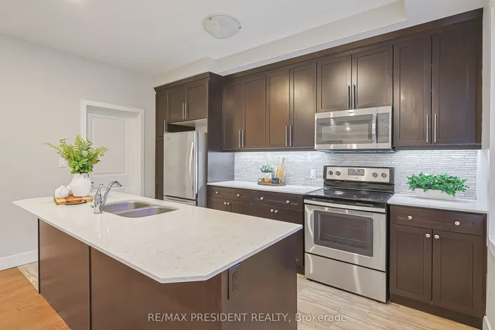 +"PublicRemarks": "Welcome to UNIT #218 a lovely stacked townhouse by Marshall Homes in Pickering's sought-after Center Point Towns community. This stylish home offers a bright open-concept layout featuring a modern bright kitchen with a center island, stainless steel appliances, and a double sink, flowing into a cozy living area with laminate flooring and a balcony with sunny east exposure. The upper level offers a spacious primary bedroom boasts his-and-hers closets and a 4-piece ensuite, while the second bedroom includes a large window & double-door closet. Enjoy the convenience of a second full bath and in-unit laundry. Step up to the large sun filled private rooftop terrace with gas BBQ hookup, privacy fencing, hose bib, and plenty of room to relax or entertain, you won't be missing a yard with a this space and low maintenance living. Close to GO Transit, Hwy 401, shopping, restaurants, and more. A perfect turnkey home in a vibrant location."
